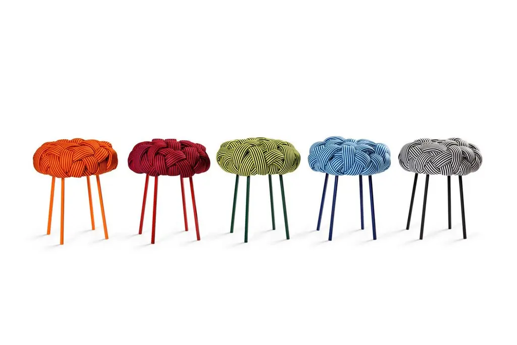 This contemporary stool is part of the Cloud collection, which was created around the concept of trees. These contemporary stools and benches are made with cotton fabric and foam stripes, woven and stitched by hand. Each piece is unique, as the result of the manual process to fabrication. Dimensions may vary within a 5cm limit due to manual manufacturing process.