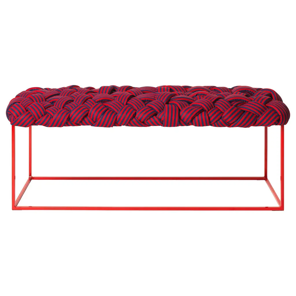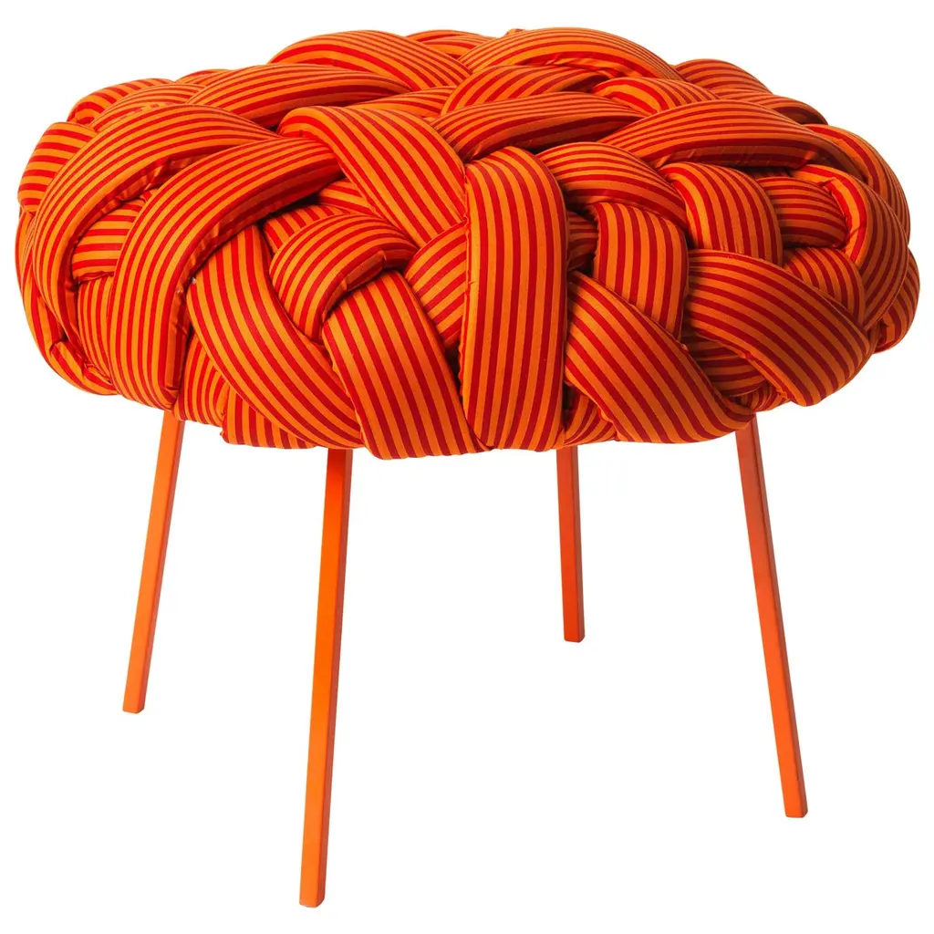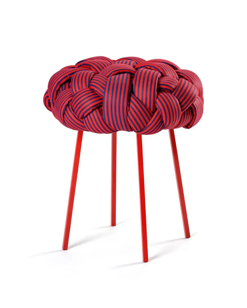 This contemporary stool is part of the Cloud collection, which was created around the concept of trees. These contemporary stools and benches are made with cotton fabric and foam stripes, woven and stitched by hand. Each piece is unique, as the result of the manual process to fabrication. Dimensions may vary within a 5cm limit due to manual manufacturing process.