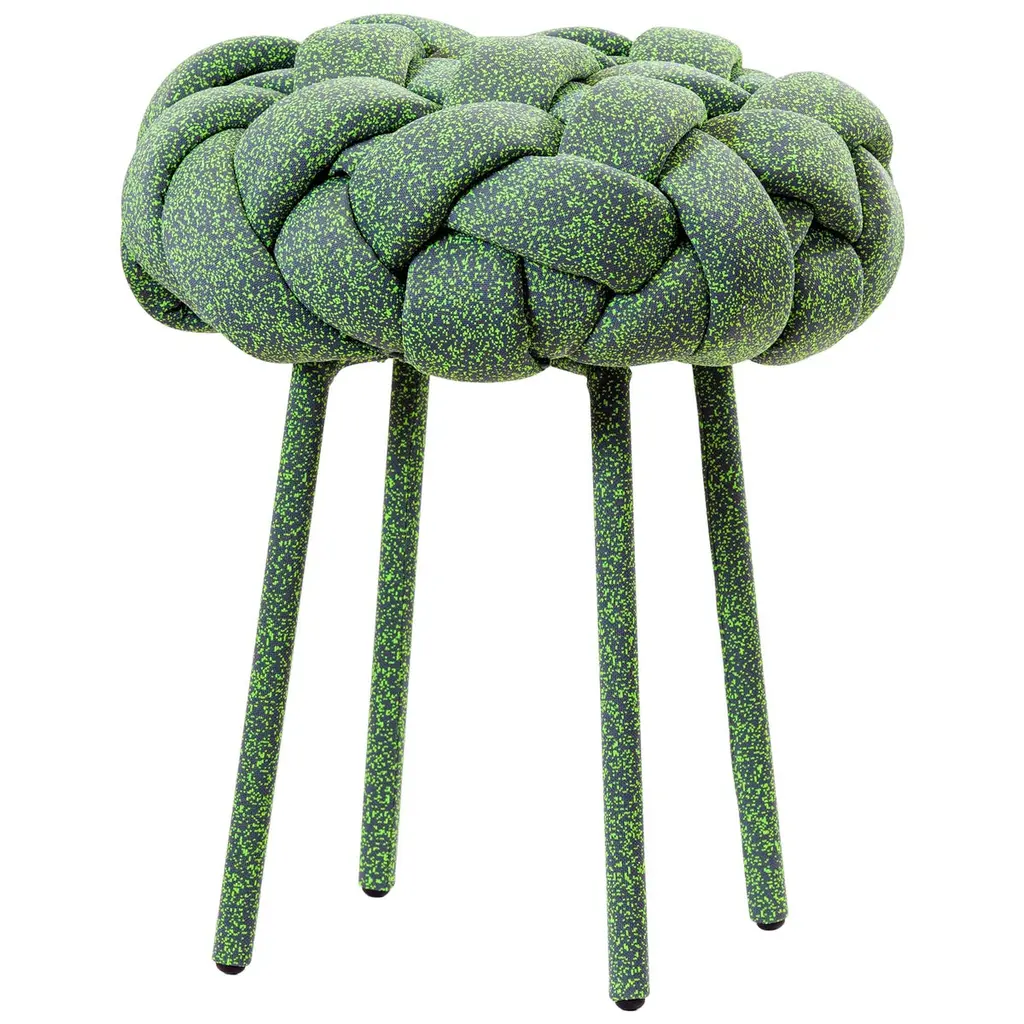 "Cloud" Contemporary Small Stool With Handwoven Green Upholstery