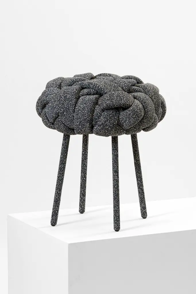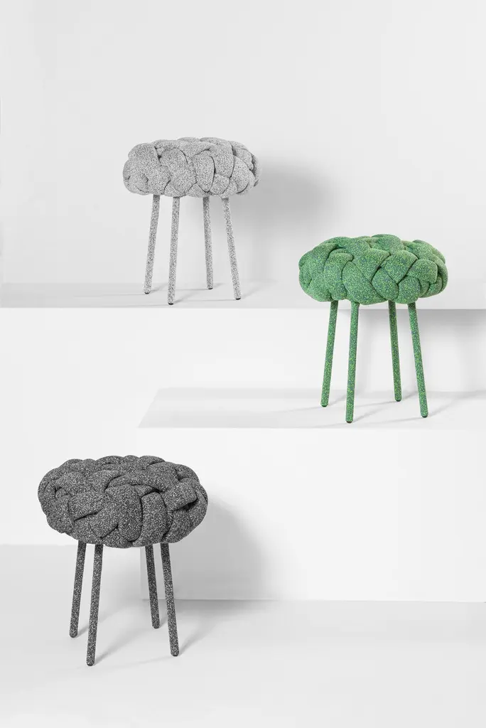 This contemporary stool is part of the cloud collection, which was created around the concept of trees. These contemporary stools and benches are made with cotton fabric and foam stripes, woven and stitched by hand. Each piece is unique, as the result of the manual process of fabrication.This piece is made with Kvadrat galaxy jacquard.Dimensions may vary within a 5 cm limit due to manual manufacturing process.