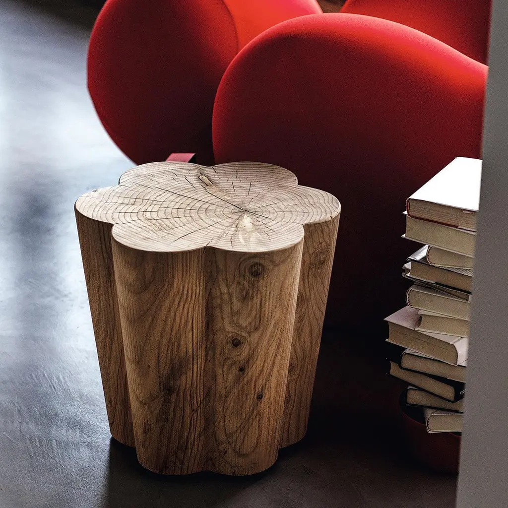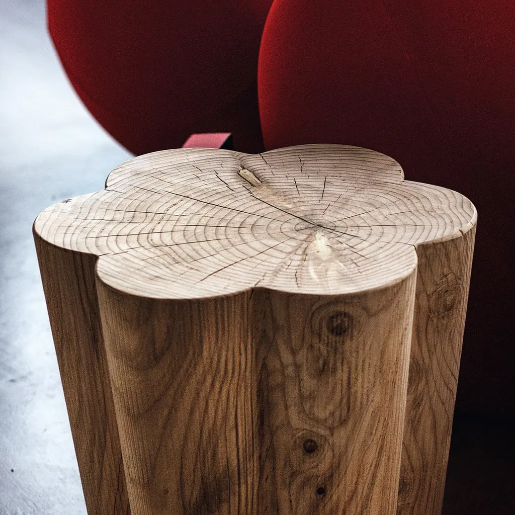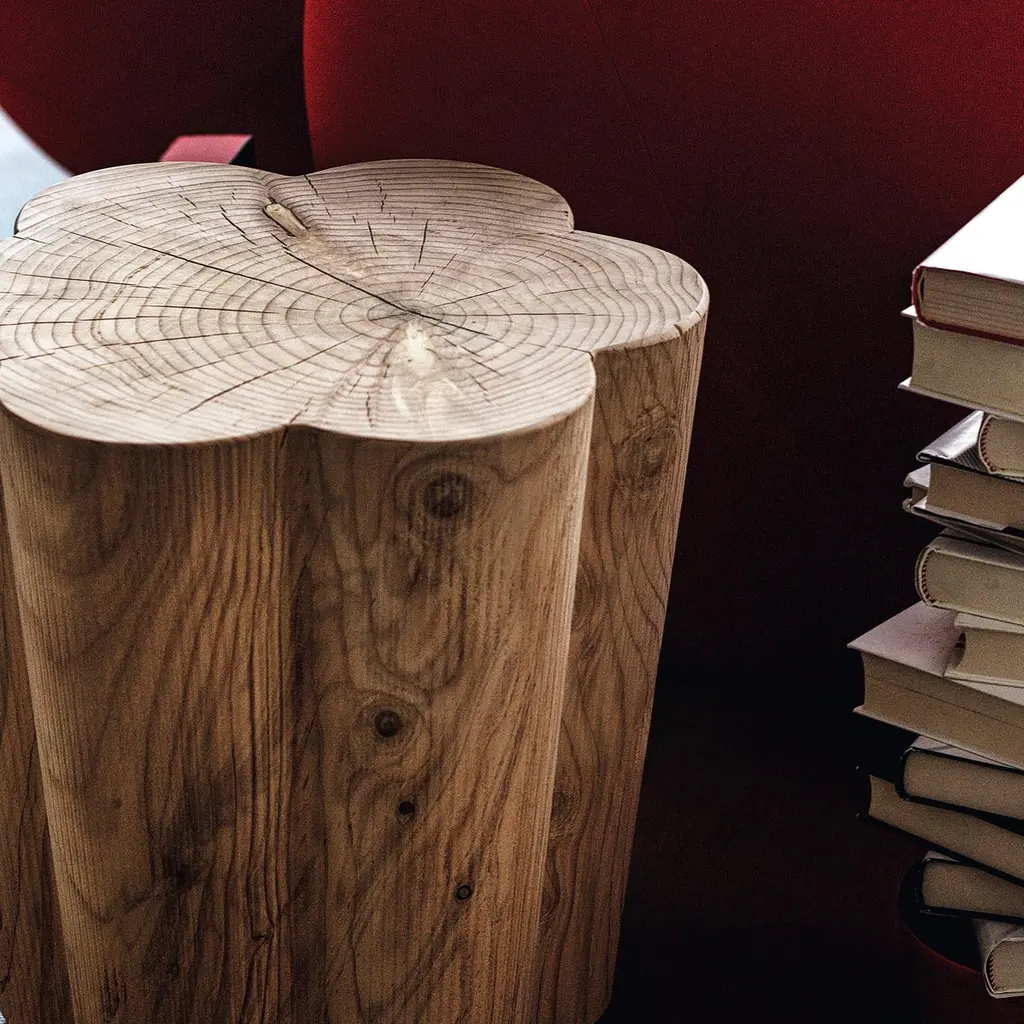 Stool Clover Cedar made in natural solid cedarwood with natural pine extract wax treatment.Solid cedar wood include movement, cracks and changes in wood conditions, this is the essential characteristic of natural solid cedar wood due to natural settlement and different environmental conditions.