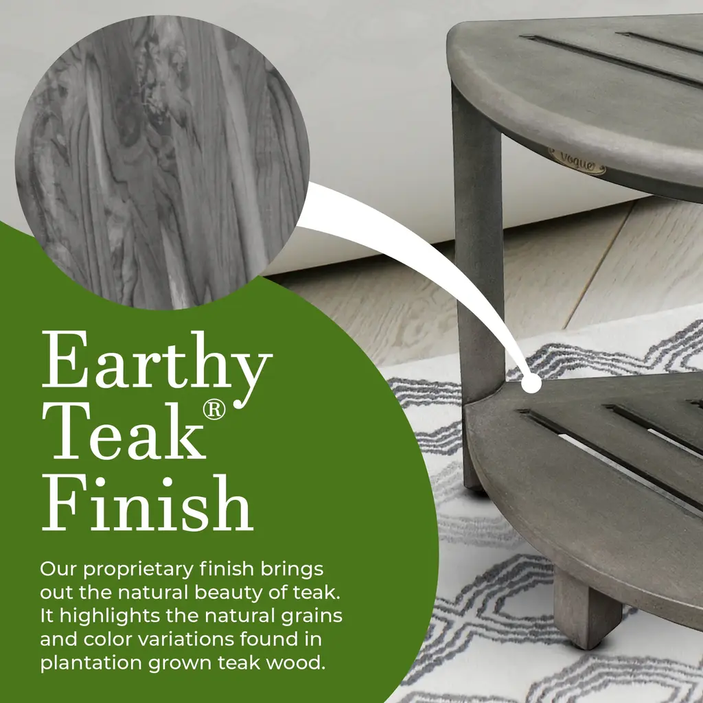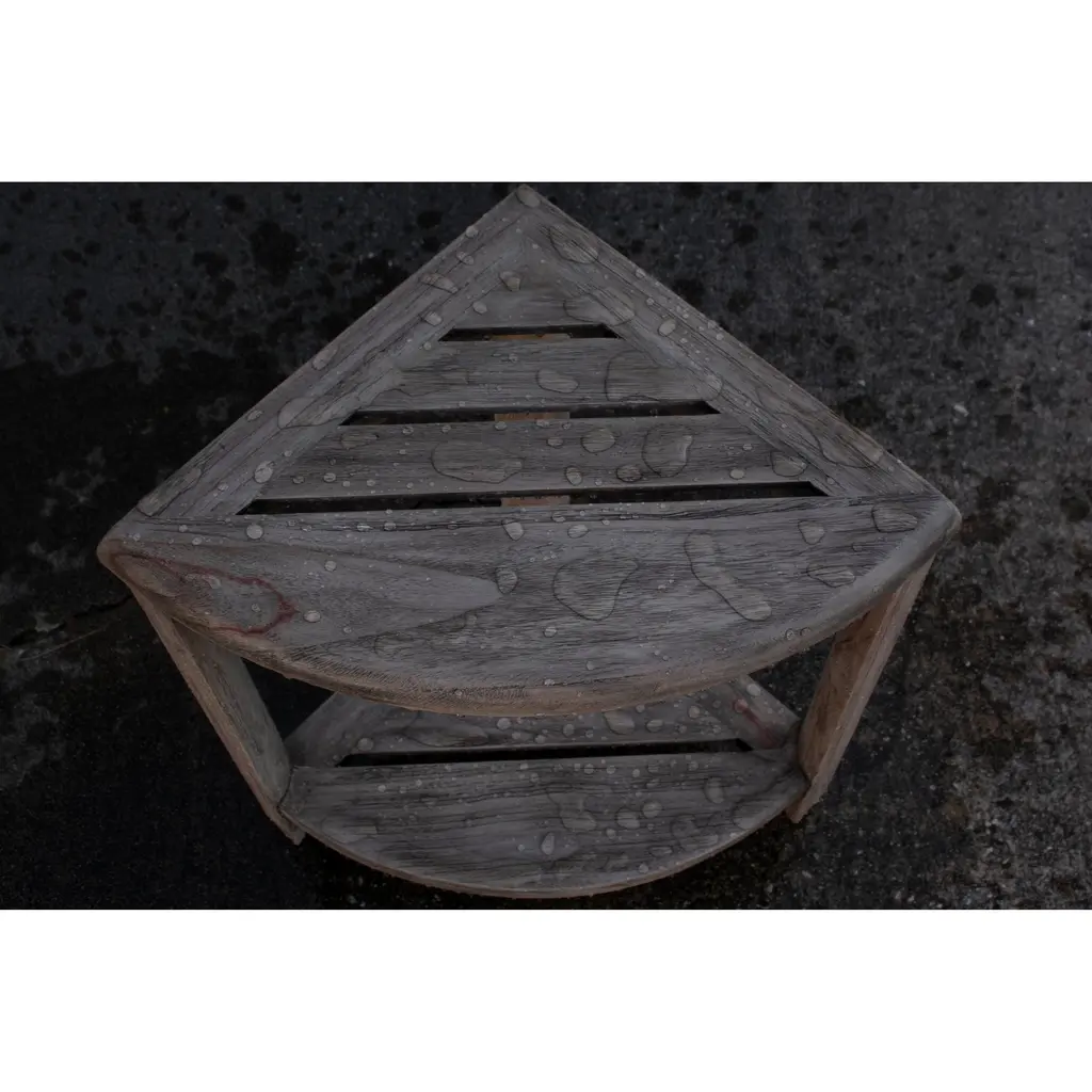 Description CoastalVogue celebrates the natural beauty of sustainably sourced teak wood. Using proprietary finishing techniques (Antique Gray), we enhance the wood's natural variations in color and grain, creating a look that's as unique as it is durable. Handcrafted in small rural workshops in Indonesia, our teak shower benches are more than functional—they're a stylish addition to any space, indoors or outdoors. Designed to last, our water-resistant, 2-tier teak shower shelf brings both elegance and practicality to your bathroom, while staying true to the CoastalVogue brand promise of quality and sustainability. With proper maintenance, the bench will retain its beautiful appearance and functionality for years to come. Although primarily designed for the shower, they can grace and accentuate any room in the house for sitting, storage, and display. CoastalVogue teak wood shower shelf is 17 inches across. The included foot leveling pads provide adjustments due to any minor slope in shower floors, promoting extra safety and stability. The two-tier corner shelf provides additional storage and easy access to your toiletries, towels, or other essential items. The water-resistant teak ensures long-lasting durability. This sturdy teak bench provides comfort and convenience in your shower or bathroom. The natural teak finish makes it perfect for any room inside or outside of your home. Features: Certified Teak for Lasting Quality: Crafted from plantation-grown solid teak, this corner shower shelf offers unmatched durability. Teak's natural water resistance ensures that this wood shower shelf remains in perfect condition, even in humid environments. Ideal for indoor and outdoor use. Teak Corner Shower Shelf. Stylish Space-Saving Design: Combining sleek, modern lines with a compact, space-saving shape, this Teak Bathroom Shelf fits effortlessly into the corner of any bathroom. The thoughtful design provides ample storage while keeping things neat and organized. Perfect for small spaces. Two-Tier Storage: With three spacious tiers, this teak shower stand is designed to hold all your shower essentials. Keep everything from soaps to shampoos within easy reach while maintaining a clean and tidy look. Teak Bath Caddy, Standing Shower Caddy. Water-Resistant Teak Finish: Our proprietary multilayer finish Antique Gray) allows the natural Gains of the wood to show, while ensuring protection from moisture. Wood Bathroom Shelf, Water-Resistant Teak. Versatile Use Beyond the Shower: This Teak Storage Shelf isn't just for the bathroom. Its versatile design allows it to be used as a corner shelf in any space—from the garden to the living room—or even as a display stand. Certified Woman-Owned Enterprise: Proudly crafted by a certified woman-owned company, this product is more than just furniture—it's a piece that supports women in rural Indonesian communities while offering premium quality. Our Teak Shower Shelf outperforms any Bamboo Shower Caddy. Adjustable Feet for Stability: Equipped with adjustable foot leveling pads, this teak shelf ensures maximum stability, even on sloped or uneven floors. Adjustable Teak Shelf, Non-Slip Foot Pads. Non-Slip Rubber Pads: Protect your floors from scratches and enjoy added safety with the non-slip rubber pads at the base. Bathroom Shelf, Wood Shower Shelf. Holds Up to 250 Pounds: This teak storage shelf can support up to 250 pounds, making it as functional as it is stylish. Sturdy Teak Shelf, Teak Storage. Easy to Assemble: Our shower shelves are designed for hassle-free assembly. All tools are included, and we provide clear printed instructions. Stress-free setup for your shower caddy. 18-inches in Height x 12-inch on each Side, 17-inches in Width. 2-Tier Teak Stool, Teak Corner Shower Bench