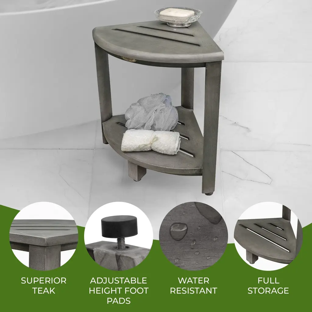 Coastalvogue, Teak Corner Shower Shelf, Shower Stool For Shaving Legs, Shower Foot Stool, Teak Shower Stool, Corner Shower Stool - Coastal Grey