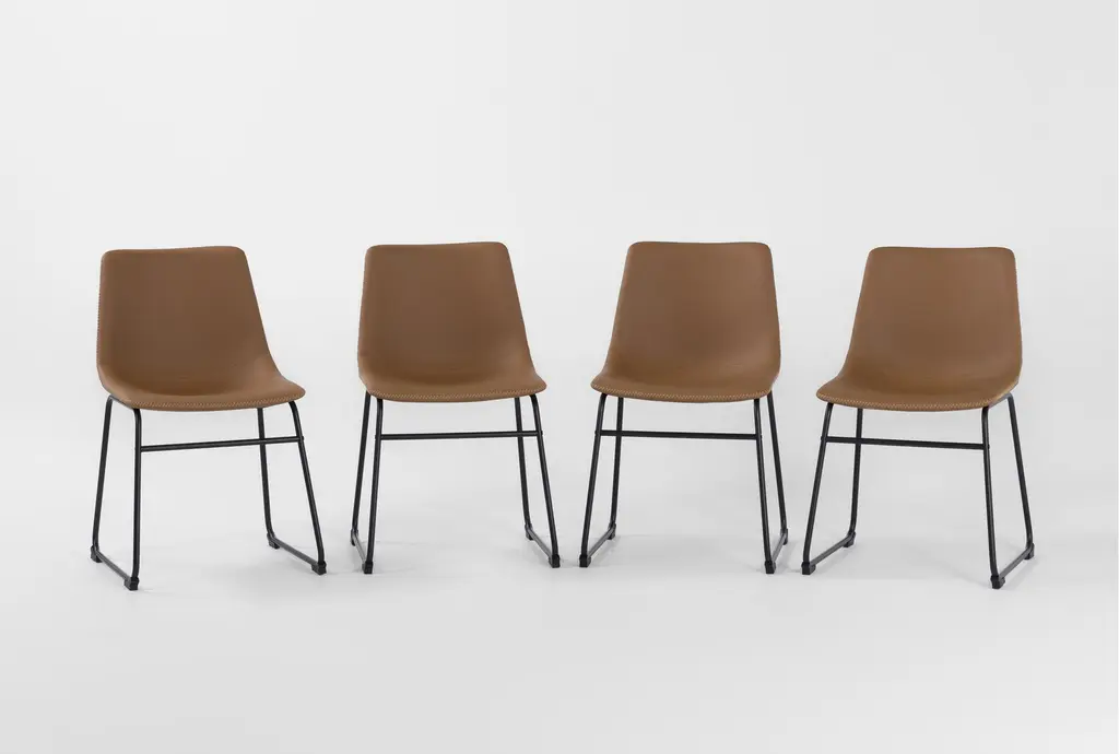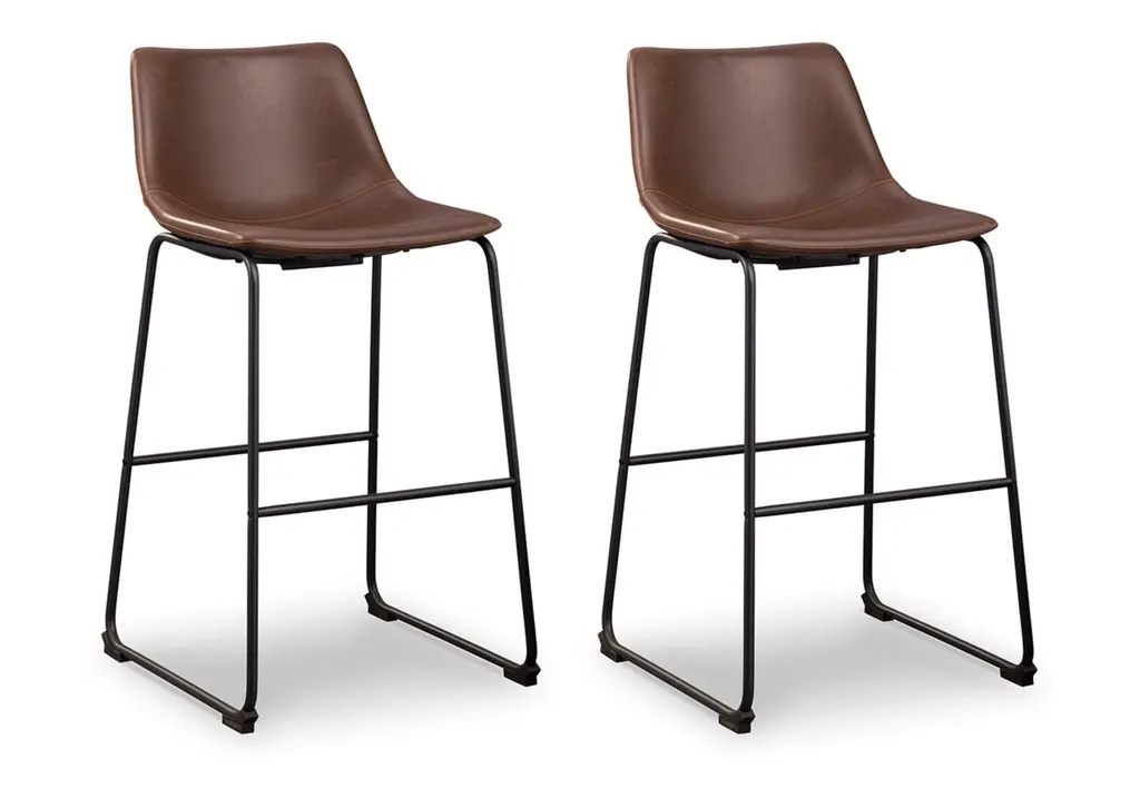 Enhance your dining experience with the Cobbler Mocha Faux Leather Bucket Seat Counter Height Stool. This set of three stools boasts a modern design that seamlessly fits into any dining room or kitchen setting. The cognac faux leather seats paired with black metal legs offer a stylish and comfortable seating option for your counter height table or island.
