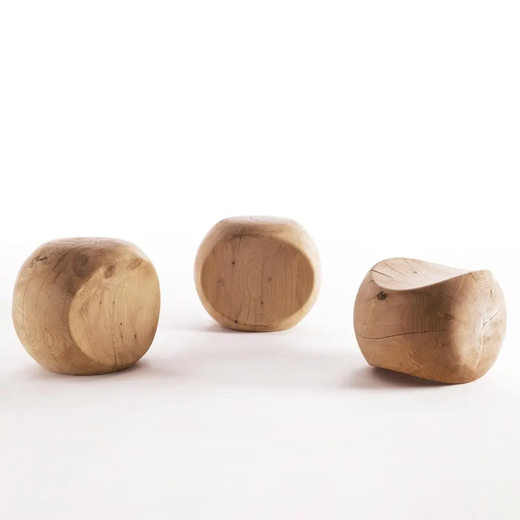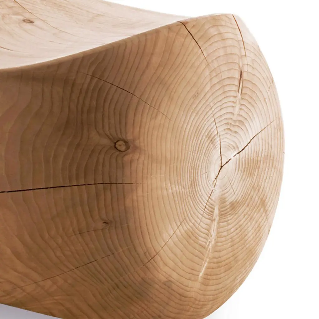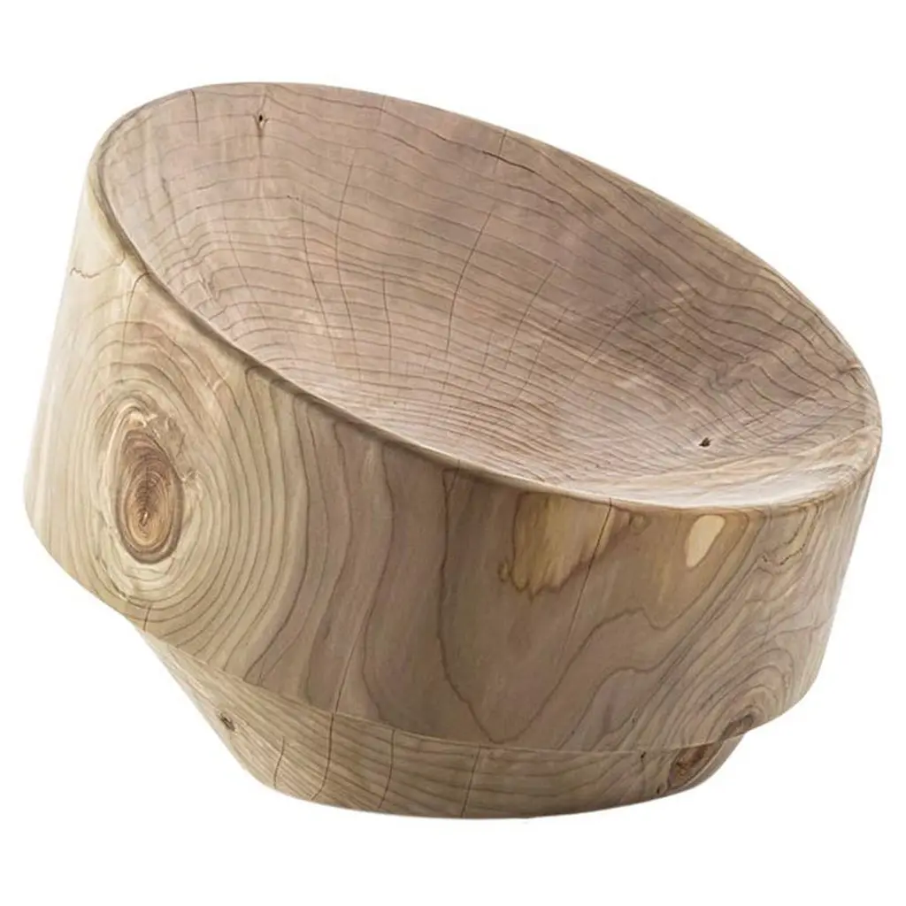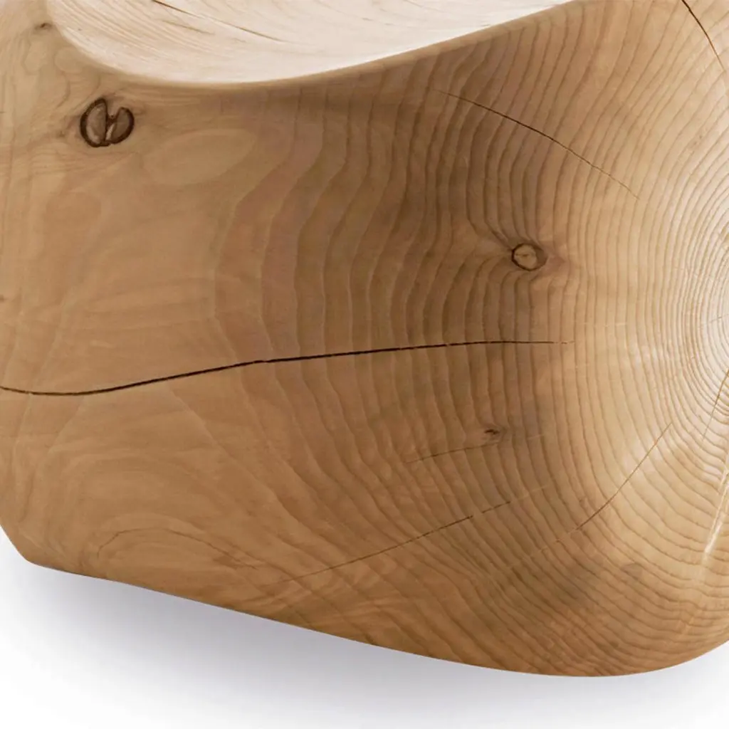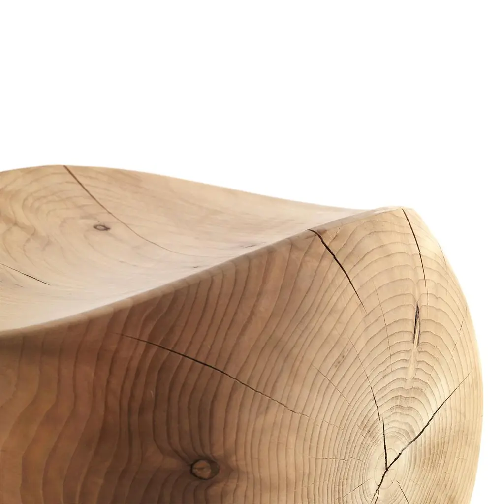 Stool Cocoona shape 1 in solid natural aromaticcedar wood. Made in one block of cedar wood.Treated with natural pine extracts.Can be used in the 3 faces of the stool.Solid cedar wood include movement, cracks and changes in wood conditions, this is the essential characteristic of natural solid cedar wood due to natural settlement and different environmental conditions.