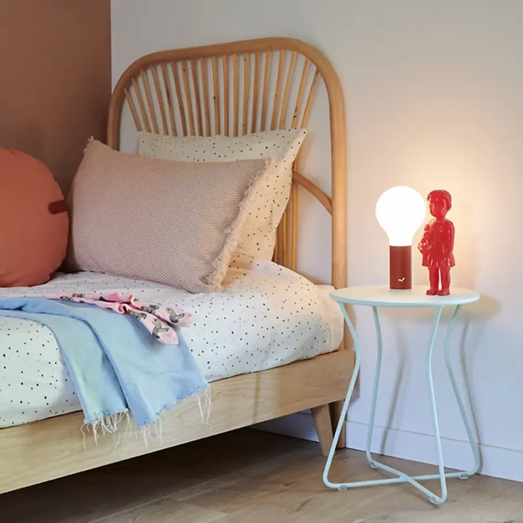 Occasional furniture designed for any occasion. The Cocotte Stool by Fermob is a sweet and versatile piece, lightweight yet strong enough to support a person’s weight. It has a smooth steel sheet seat and a crisscrossed steel rod base with petite rubber feet that protect it from scratches. While sturdy enough to be a stool, this design can also just easily pull extra duty as a side table in a living room, bedroom or dining area, indoors or out.