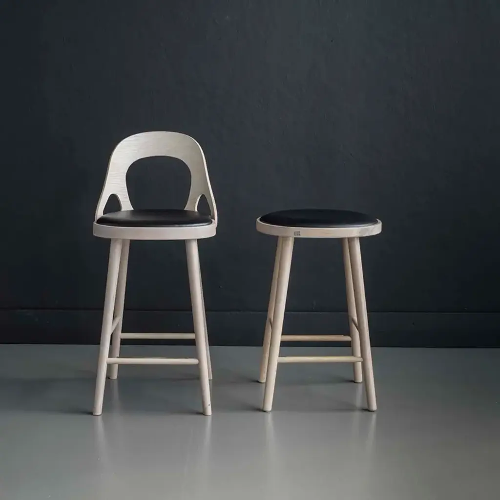 Colibri bar chair is a result of the extended collection of the multifunctional chair whose backrest is addible. The design itself came out of the search for the perfect seat comfort. That is achieved by the rounded backrest made out of plywood which provides perfect comfortable support for your back, while the cushion seat adds softness. Fantastic design by Marcus Johansson for Hans K, a perfect choice for any occasion.Colibri is a solid oak wood stool with integrated leather cushion and footrest. You can choose between different colors. Available in the version without or with backrest, in two different heights.