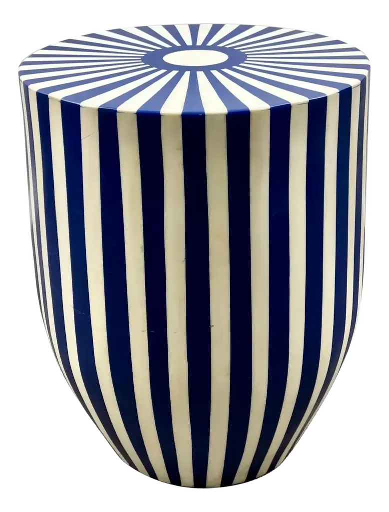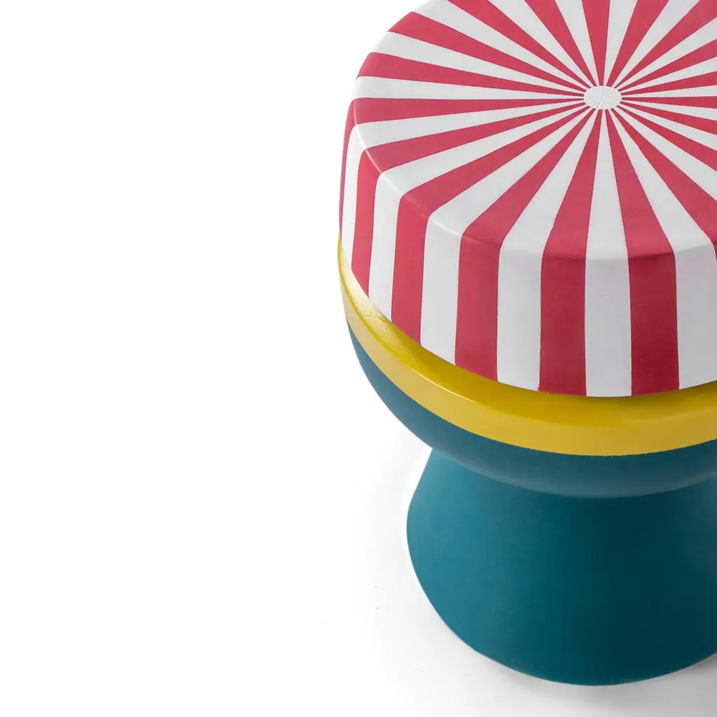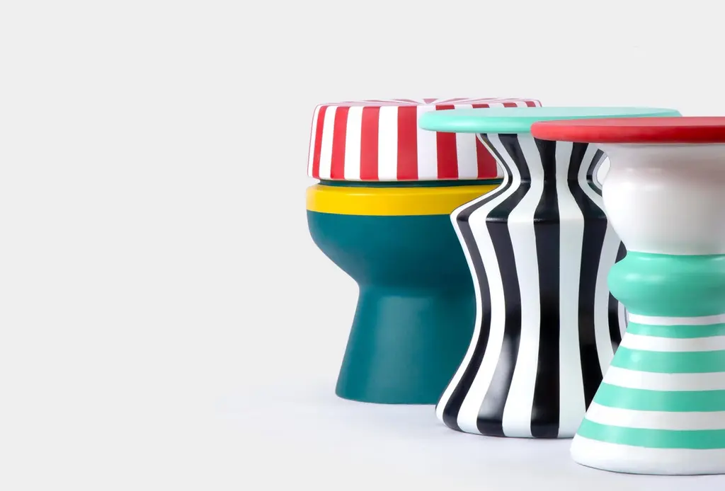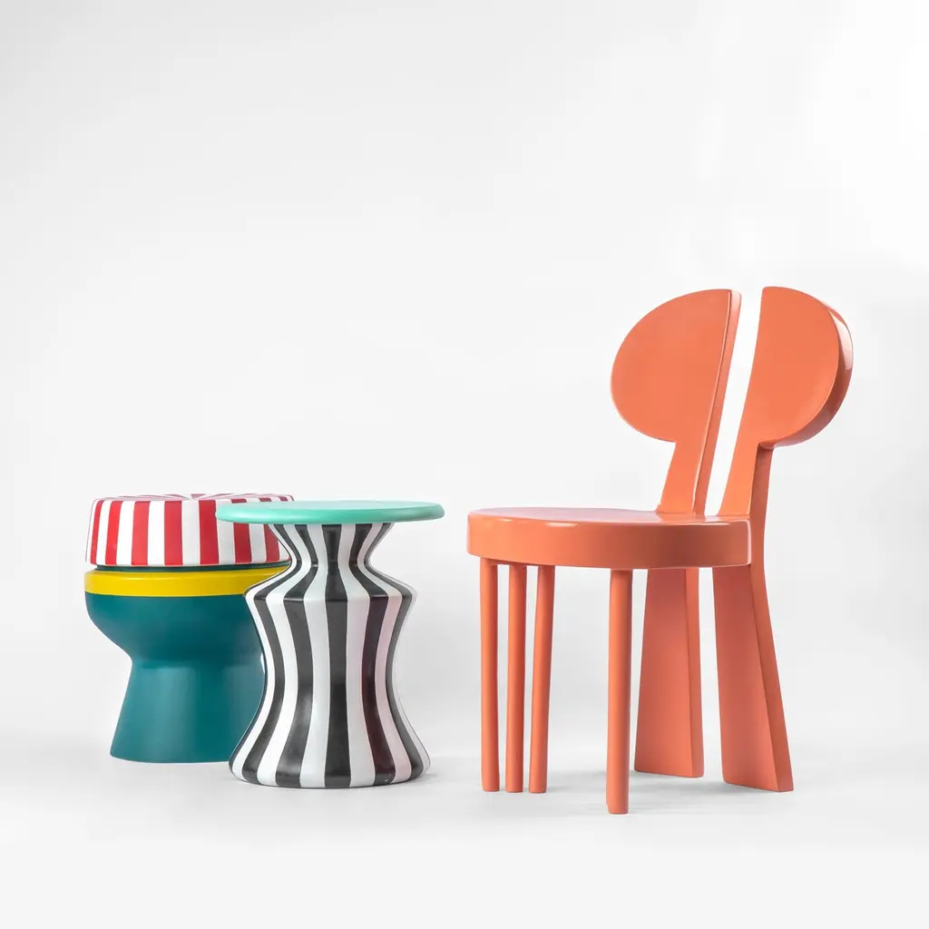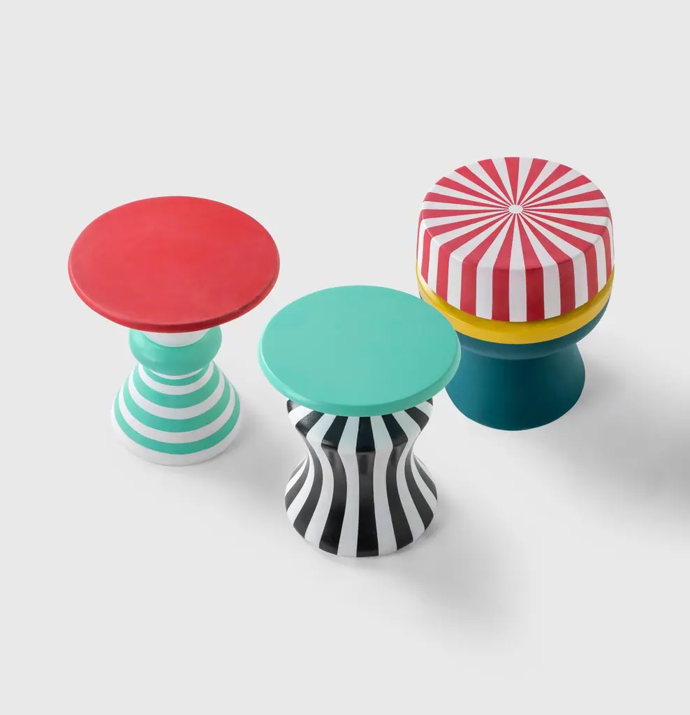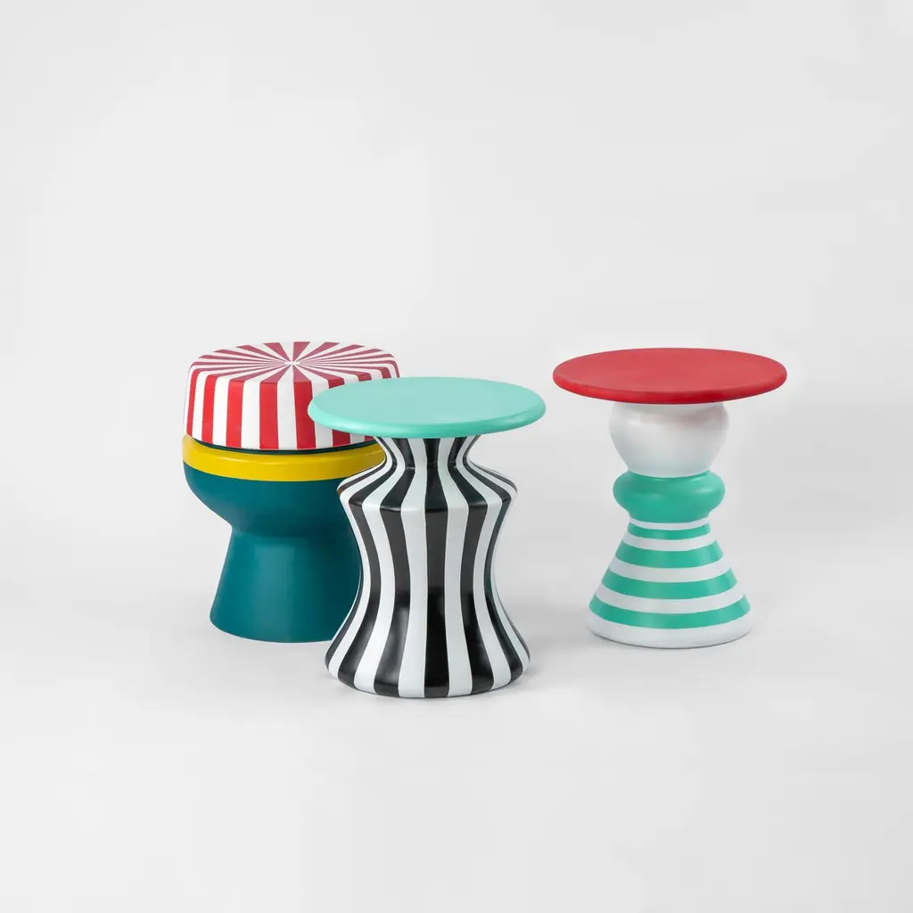 Colorful weather-resistant fiberglass outdoor side table and stool - Nubian Baby Doll.This family of stools and side tables are as quirky and whimsical as the characters found in Nubian fables and folklore. They come in a range of color patterns that tease the senses and uplift any corner of the home or office. Adding a splash of color and a dash of personality. They are as practical as they are fun and playful, with endless options to mix-and-match and customize. Withstands all outdoor conditions. Color can be customized to suit your space.