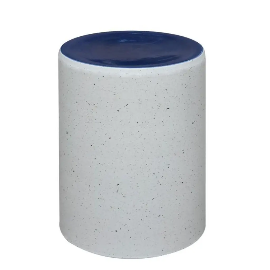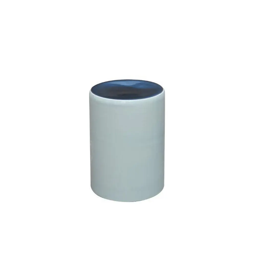 Column stool, white effect and blue glaze by WL CeramicsDesign: David DerksenMaterials: Porcelain, white effect and blue glazeDimensions: 30 x 30 x 40 cmAlso available: different colors and glazes of the column stools.Porcelain cylinders and corten steel plates form the basic elements of this series, with which it is possible to create shelving, side tables, low tables and stools. Through the use of different glazes and other types of decoration of the porcelain parts, as well as color coating on the steel plates, this series creates endless possibilities for customization. From a contemporary finish to a more classical appearance, it is all possible.At WL CERAMICS we make porcelain with passion. We are a family run company based in Jingdezhen, China, the birthplace of porcelain manufacturing. Since 1993, we have been producing decorative porcelain objects based on centuries of tradition and craftsmanship.While we have mastered many manufacturing techniques, we specialise in large wheel-thrown objects such as vases, planters and ceramic furniture. Together with our clients, we design and develop unique products. Whether it is in the pursuit of exclusive dinnerware or a giant porcelain vase, we love to inspire you and turn your ideas into a reality. In addition to working with interior architects, brands and designers, we produce a collection of our own that may be ordered as is or customised to one’s own specifications.