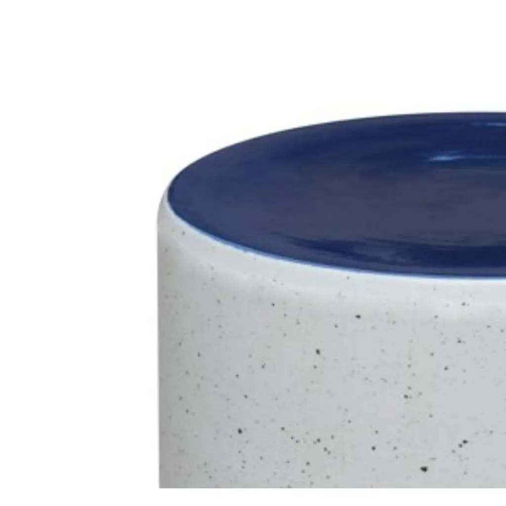 Column Stool, White Effect And Blue Glaze By Wl Ceramics