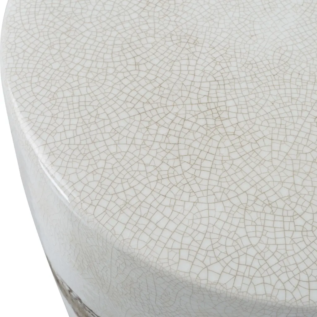 Showcasing A Rustic Casual Look, This Ceramic Garden Stool Features An Off-white Crackle Glaze With Distressed Rust Brown Details And Noticeable Ribbed Texture. May Be Used Outdoors, But Protection From Freezing Temperatures Is Recommended.