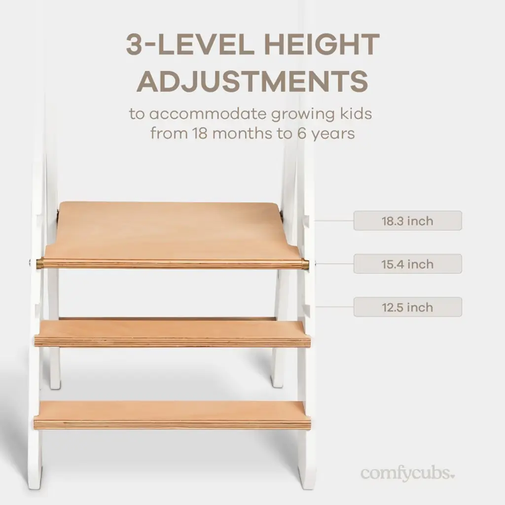 Comfy Cubs Kids Step Stool For Ages 3+, 3 Height Adjustable Toddler Tower For Kitchen Sink & Bathroom Access - White