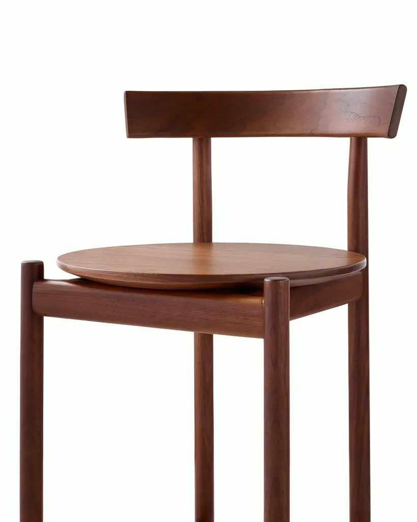 An easy addition to any bar or counter area, the Comma Stool (2021) embodies the warmth and craft found in many prized twentieth-century designs. Expertly constructed with a steam-bent backrest and mortise-and-tenon joinery, the simple form consists of a circle seat, rounded back, and straight legs. “For me, it was very important that the stool had generosity in its spirit, even though it was reduced to a few elements,” says designer Michael Anastassiades.