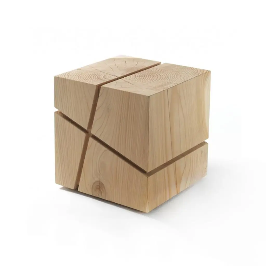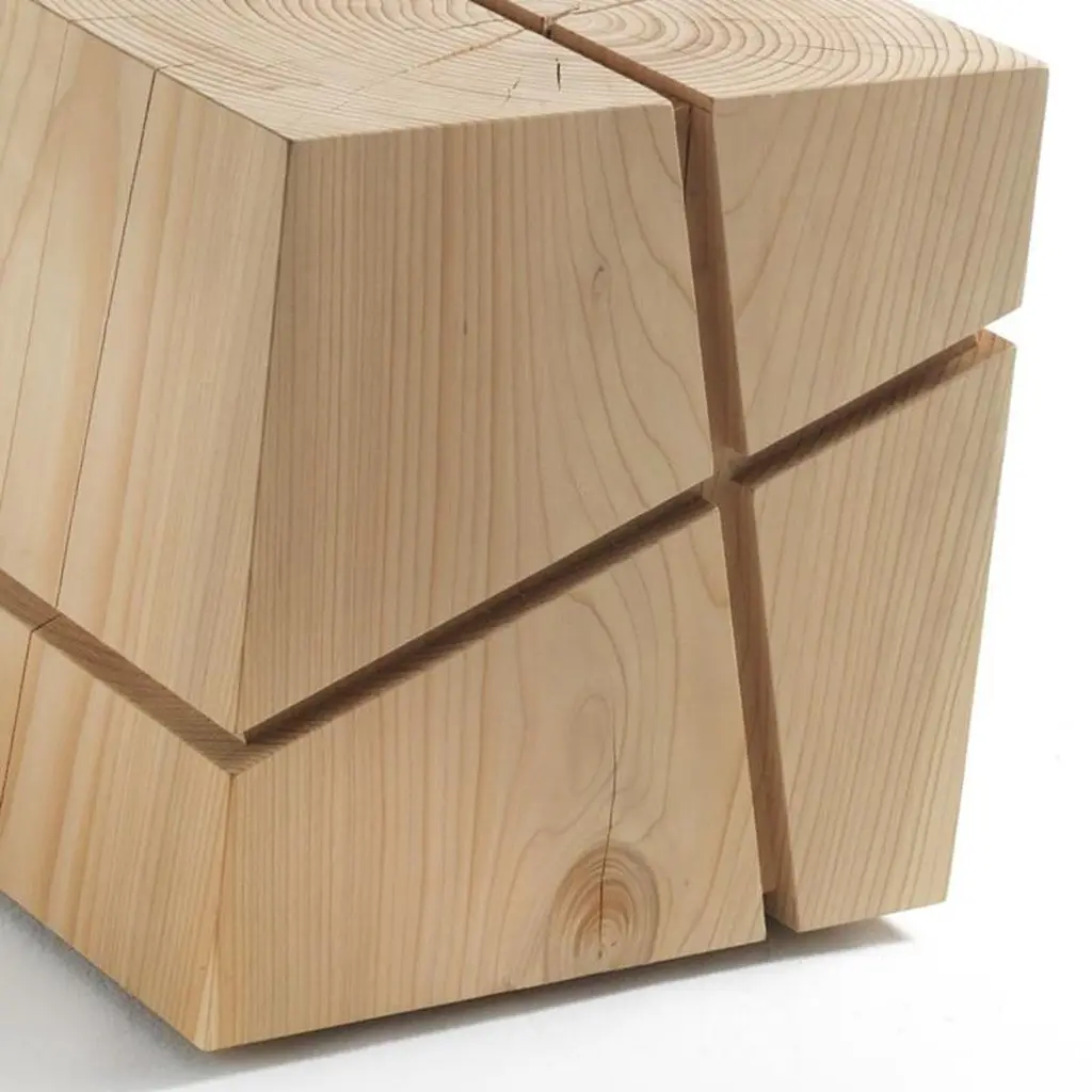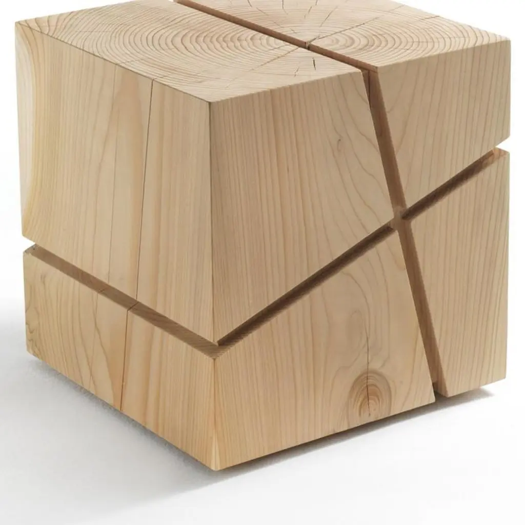 Stool Concepta Cedar made in a block of natural cedar trunk.With perpendicular lines which runs along the six faces. Treatedwith wax with natural pine extracts.Solid cedar wood include movement, cracks and changes in wood conditions, this is the essential characteristic of natural solid cedar wood due to natural settlement and different environmental conditions.