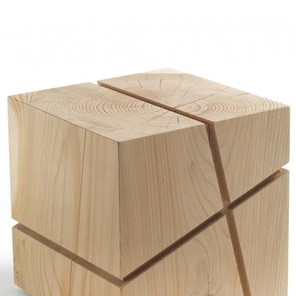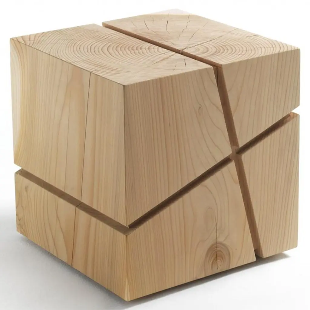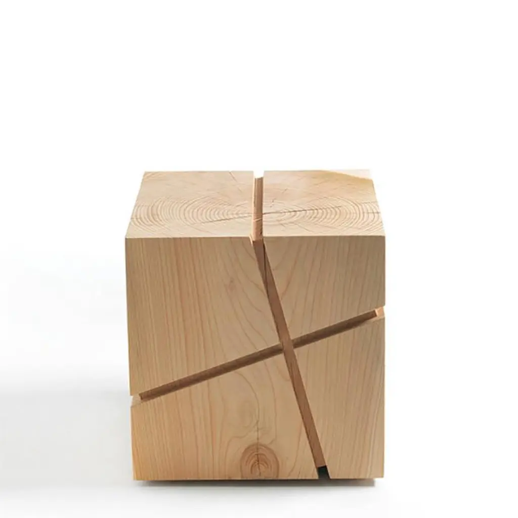 Stool Concepta Cedar made in a block of natural cedar trunk.With perpendicular lines which runs along the six faces. Treatedwith wax with natural pine extracts.Solid cedar wood include movement, cracks and changes in wood conditions, this is the essential characteristic of natural solid cedar wood due to natural settlement and different environmental conditions.