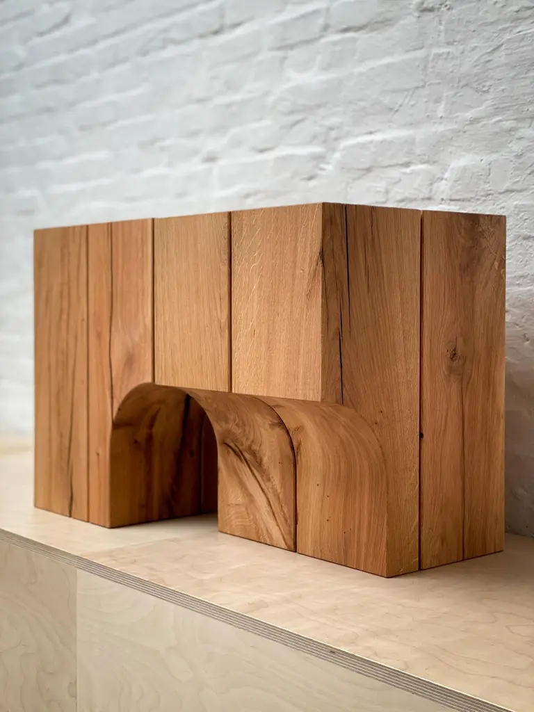 Arch 01.1 is a stool or a side table with a clear design language. What looks like a static element quickly becomes much more dynamic when in use by someone sitting on it. The curve that slims down the seating object, creates a difference in mass, which offers the possibility to balance it while sitting. A beautiful collaboration between ergonomics and aesthetics.The arch object is made out of sustainable solid oak. This one is a special edition because it consists of 4 wooden parts, subtly connected with brass rings. Please note that this product is part of our MKIII series. It’s made of 4 wooden beams and therefore solid and quite heavy.Barh is a high-end furniture and objects brand, known to combine the finest materials, design details and fine craftsmanship in unique creations, build for those who want to grant themselves something unique, extraordinary. Core values are subtlety and elegance as pinnacles of beauty. Contemporary, distinguished and timeless.Distinct, unique pieces, made with the finer materials and crafted one step beyond perfection. Guaranteeing an investment in exclusivity is exactly what will be supplied, a feeling of connected individuality and uniqueness.