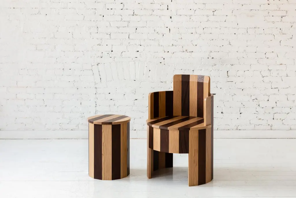 Contemporary Cooperage Stool In Striped Oak By Fort Standard, In Stock