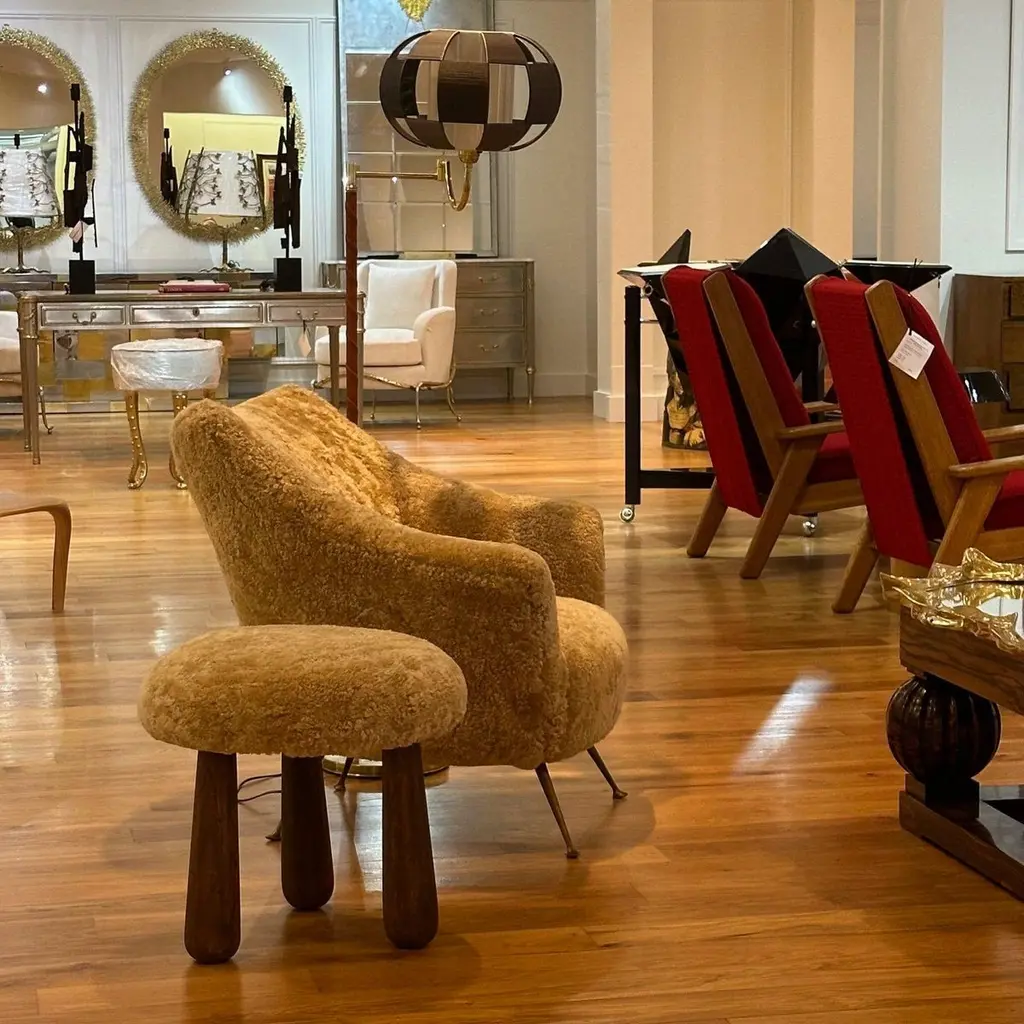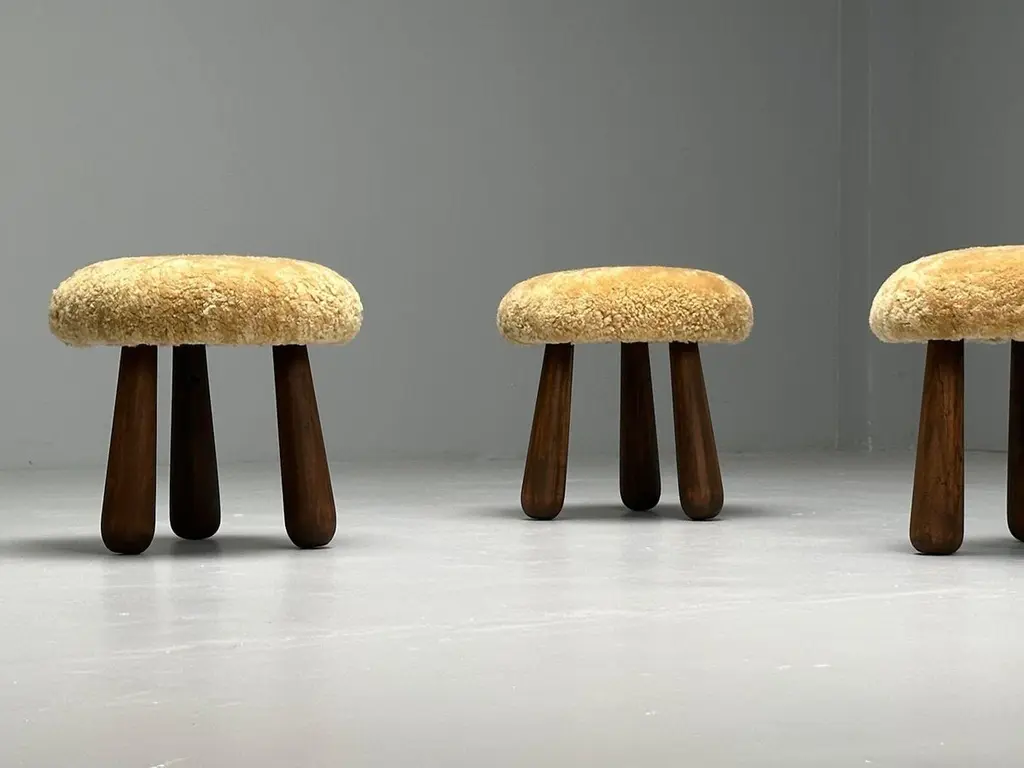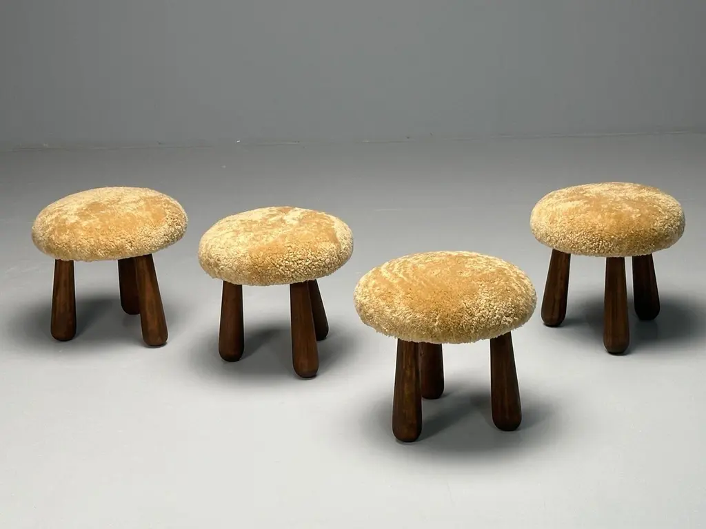 Contemporary, Danish Modern, Sheepskin Stools, Honey Shearling, Maple