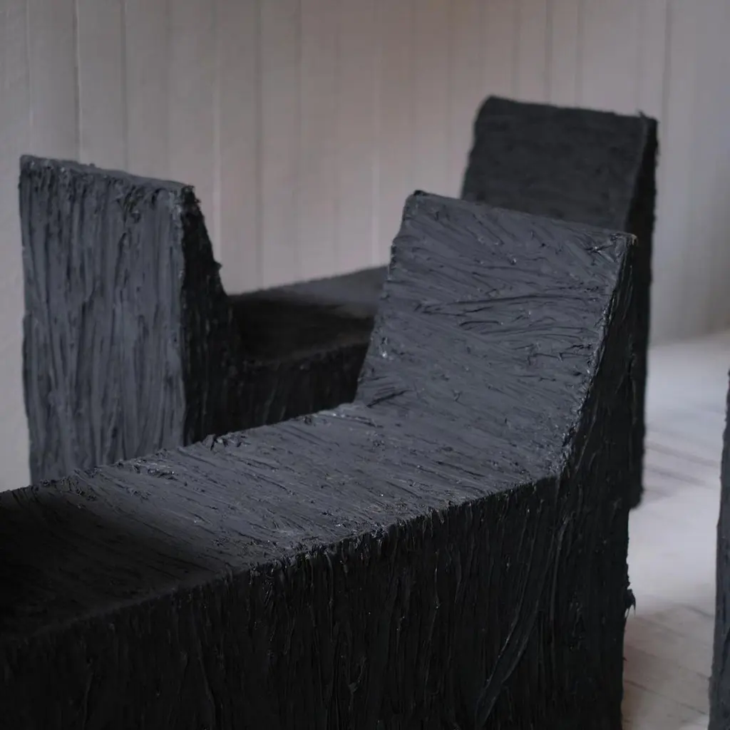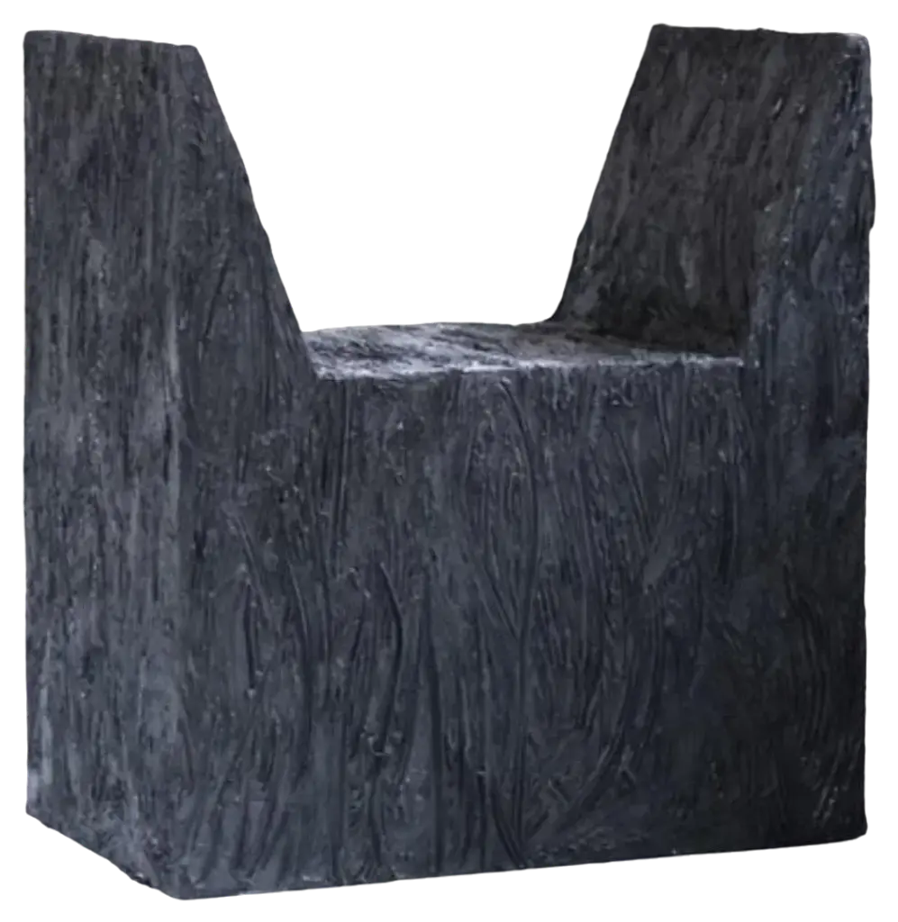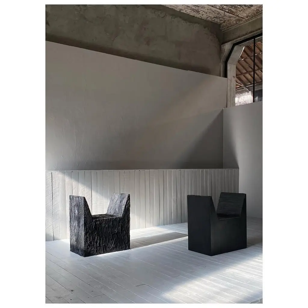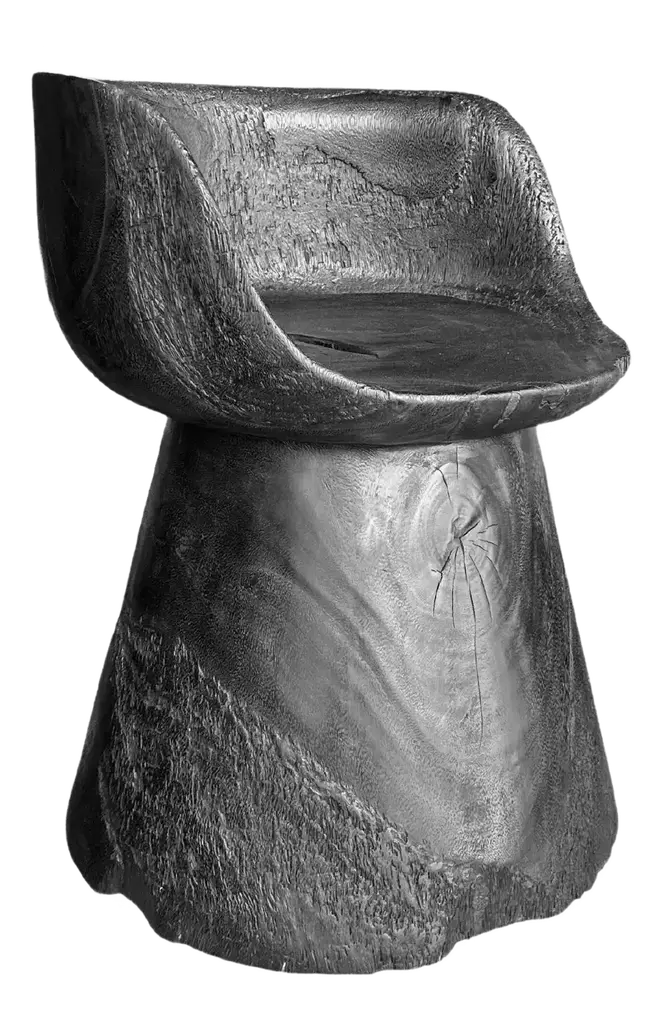 AD Rubber Stool Small by Arno DeclercqDimensions: D 38 x W 63 cm x H 69 cm.Materials: Foam and rubber.Arno DeclercqBelgian designer and art dealer who makes bespoke objects with passion for design, atmosphere, history and craft. Arno grew up in a family with parents who like to work with beautiful brands and objects.His father studied at the Royal Academy of Arts Fashion Department, he worked for Bikkembergs and made his own fashion brands, but has also collected tribal arts for more than 20 years. His mother, who worked with his father from the beginning, bought a shoe store in 2010 where they sold brands as Rick Owens, Ann Demeulemeester, Maison Martin Margiela, ... With the interest in beauty he learned from his parents, Arno studied interior design, after learning a lot about materials and with great knowledge of history he designed interiors and opened his own gallery for ethnographic art and design.The collection has come to the idea that there are too few interiors where they no longer have the big and static vases and candlesticks that the people had in big houses over 100 years ago. By focusing on architecture, ancient arts and design, after war buildings, defence buildings (bunkers and fortresses) and tribal arts, he created a collection that became a classic. Each piece is unique because it is entirely handcrafted by him. Made of tropical hardwood called Iroko this he discovered after one of his many trips to West Africa interested in voodoo arts.In these strange tribal arts, the wood "Iroko" is used in many objects, according to their culture, the ancestors lives in these trees, and they also call this tree "the king of the forest".Arno also combines this with Belgian Oak, that dried for more than 30 years, wood that was provided for the many furniture makers in Mechelen.By treating these objects through the Yakusugi technique or another mentioned "Shou Sugi Ban" an ancient Japanese technique where the objects are burned to protect the wood from weathering and subsequently fixed to get a patina look as long as possible. This gives each object a unique texture.