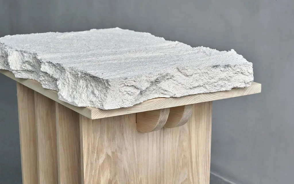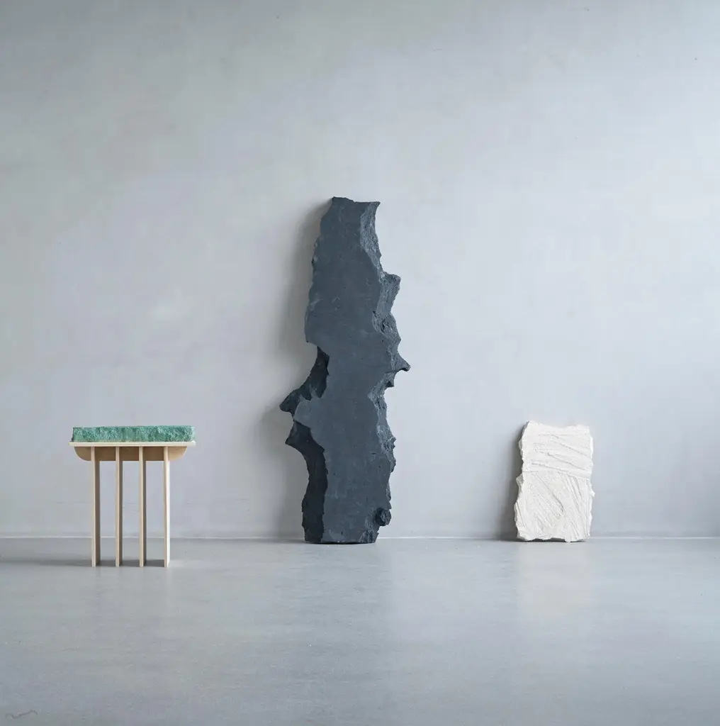 One-off a kind - Contemporary Design, Thinking space - stool, made by the art and design duo Andredottir & BobekThey have in this collection imitated landscape with artificial materials and created an artificial scene of nature because art and design often find common ground here they ask themselves, can we live in an artificial landscape without nature or can nature be found in the artificial materials.Here you are allowed to explore the materials and explore moss and stone in a new way. The many handcrafted shapes give a natural rough looking surface that allows the eyes to wander and find new places to investigate.Thinking space, stool - From the collection "Artificial Nature" the top Imitates stone and rock formation made in reuced mattress and foam hardened up with plastic plaster. Lightweight material. sustainable collection. Collectible art and design pieces, limited edition and one off's.Home and office decor, interior and design pieces. Exhibitions and gallery object's.Made by the design and art duo "Andredottir & Bobek" Thinking space, stool - is made of ash wood and foam which has been hardened with Jesmonite/plastic plaster and stained with colors.it is made as a stool or side table.the top piece has a rye surface and should therefore only be cleaned carefully with a vacuum cleaner and never a wet cloth. Has been featured in magazine such as - Elle Decoration, Rum Id, and Ark Journal.