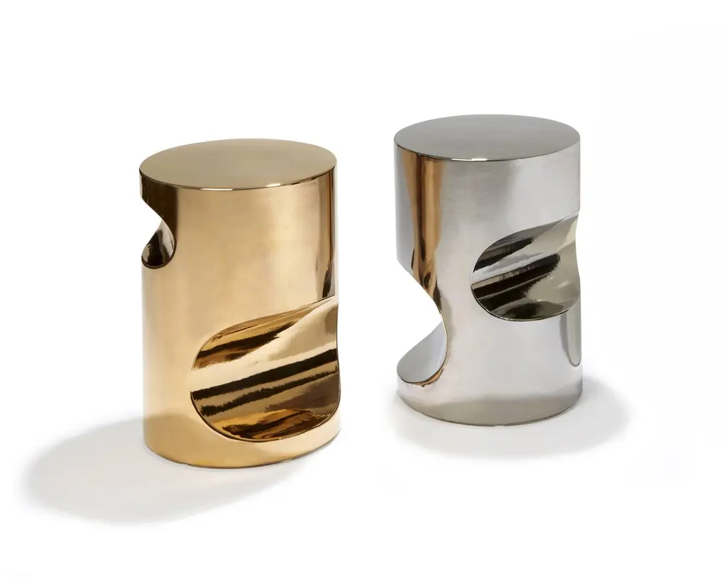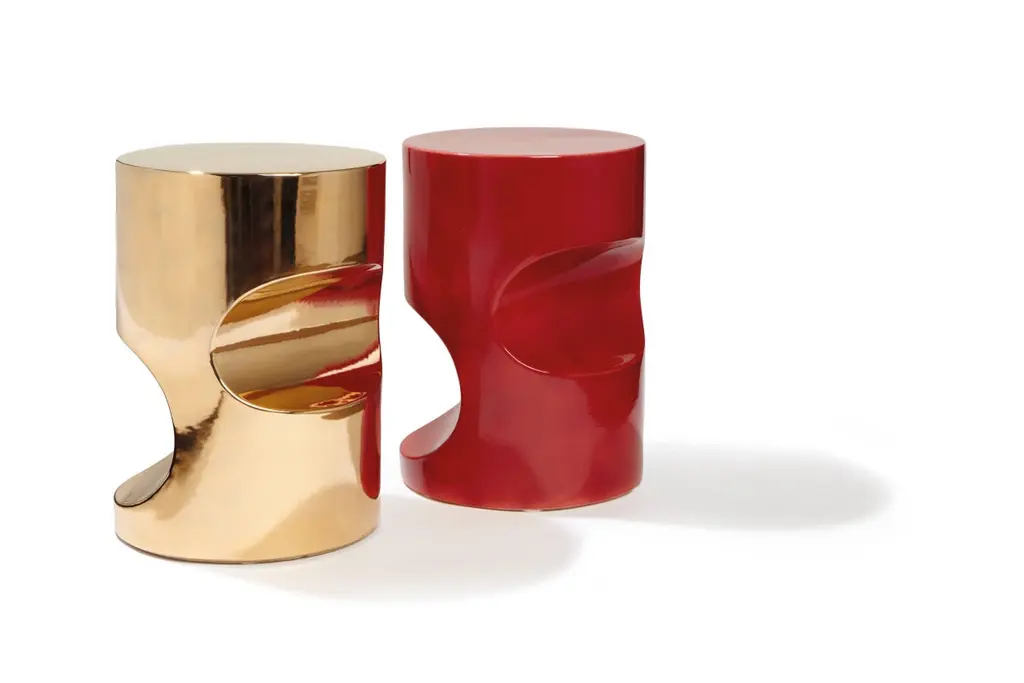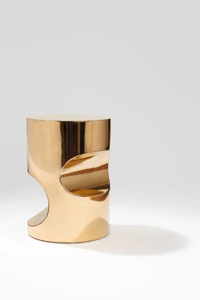 Contemporary Gold-Toned Ceramic Stool By Hervé Langlais