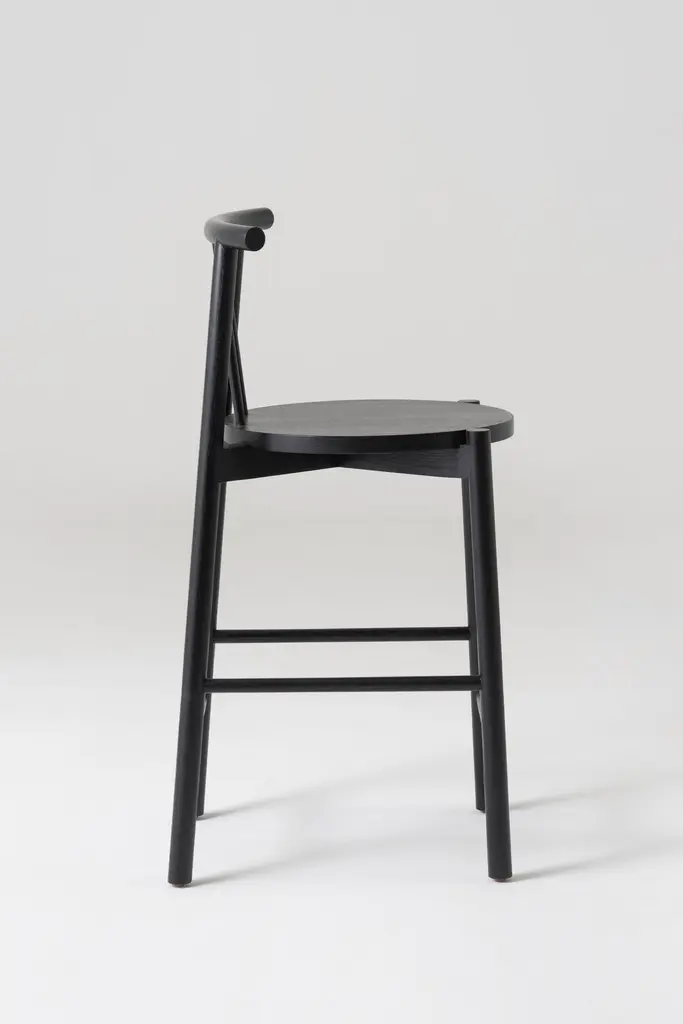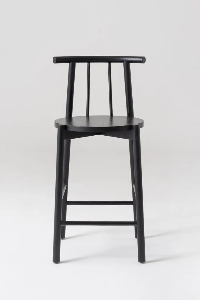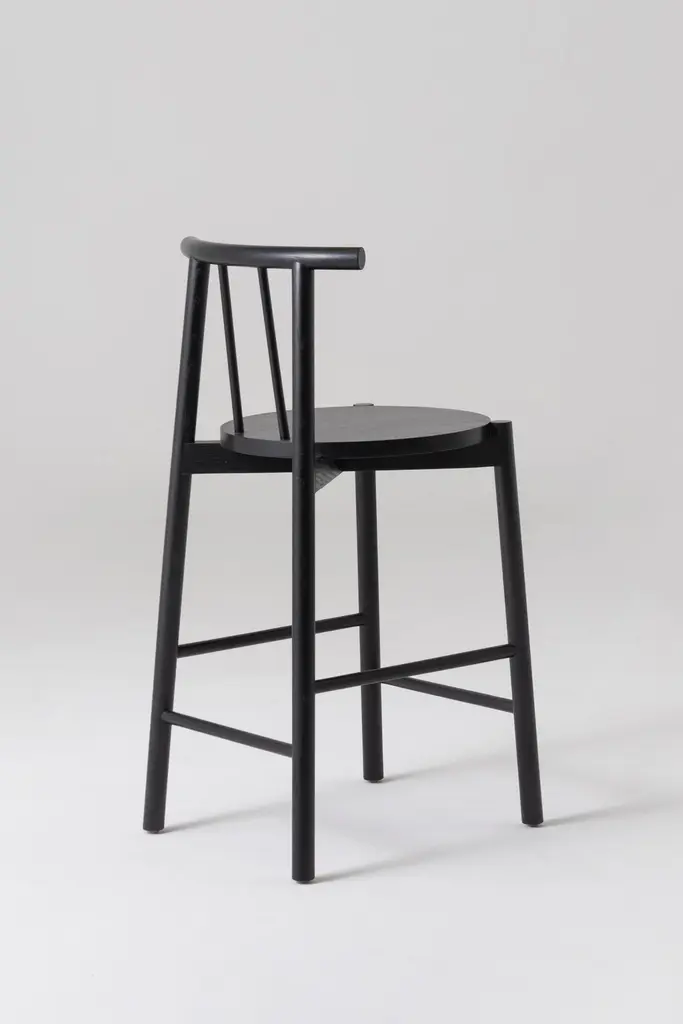 Contemporary Handmade Solid Oak Wood Stool Finished In Black
