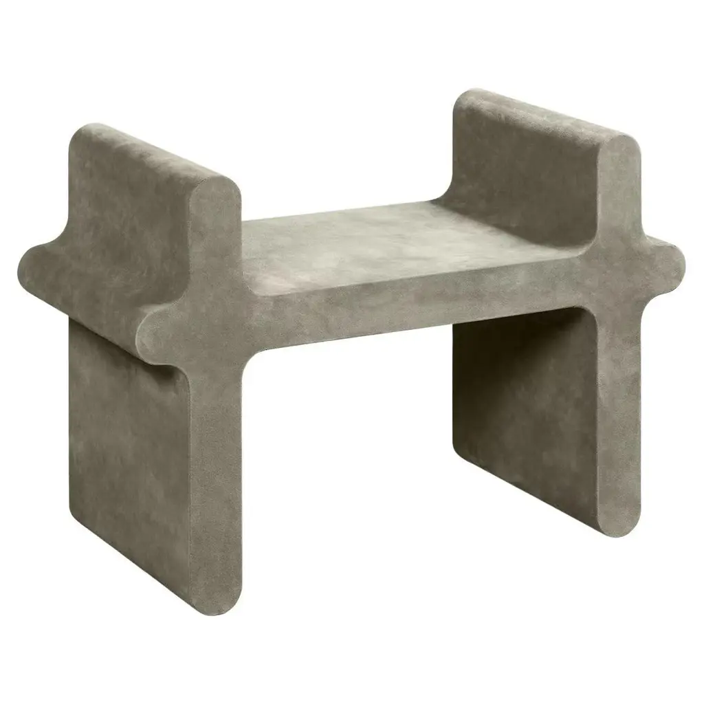 Contemporary suede leather stool - Ossicle N.2 by Francesco Balzano for Giobagnara.The object presented in the image has following finish: A06 ivory suede leather.Defined by soft and delicate lines, this chair is superbly upholstered in beige leather adding a charming accent to this clean and essential design. Part of a series that interprets in a modern way the tiles used in the Ancient Greek and Roman "Jeu des Osselets" game, it embodies the perfect balance between raw material and pure geometry.Design: Francesco BalzanoMaterial: Suede Leather, fully leather covered.Dimensions (in): W 35.43 x D 15.75 x H 25.00Dimensions (cm): W 90 x D 40 x H 63.5Made by hand, in Italy.This item is made to order. Please choose the finish that you want for your piece.