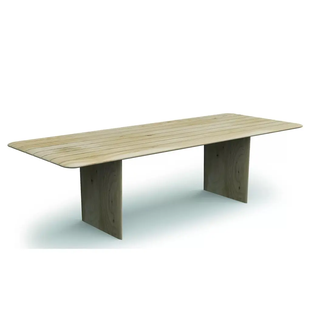 Contemporary Outdoor Dining Table, Ten Stools In Solid Cedar Wood