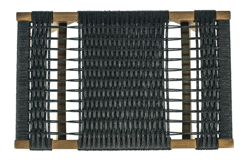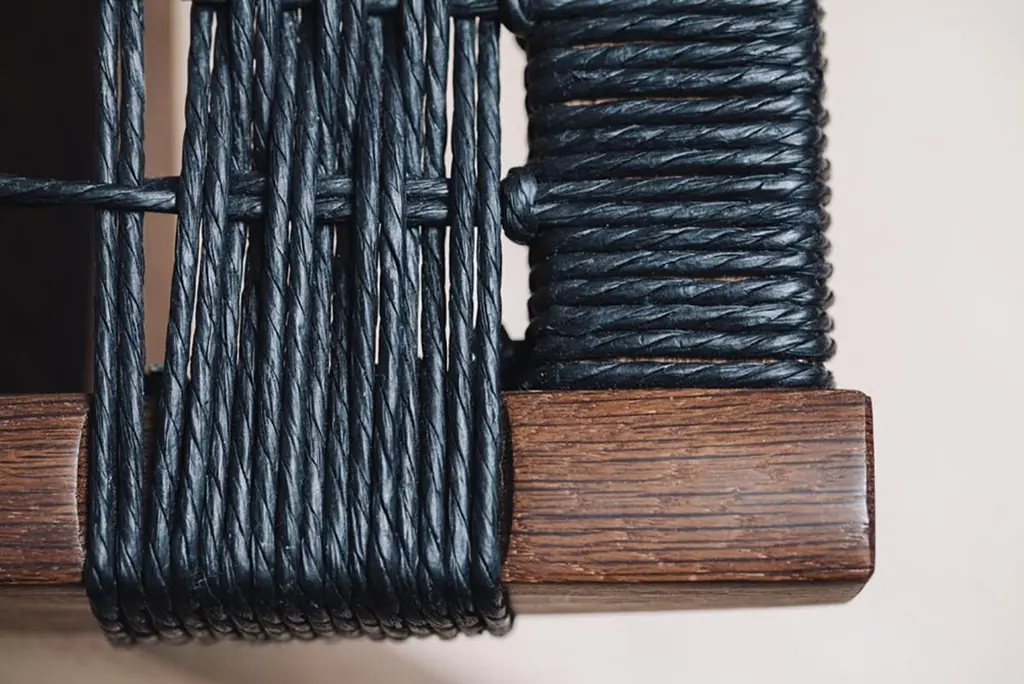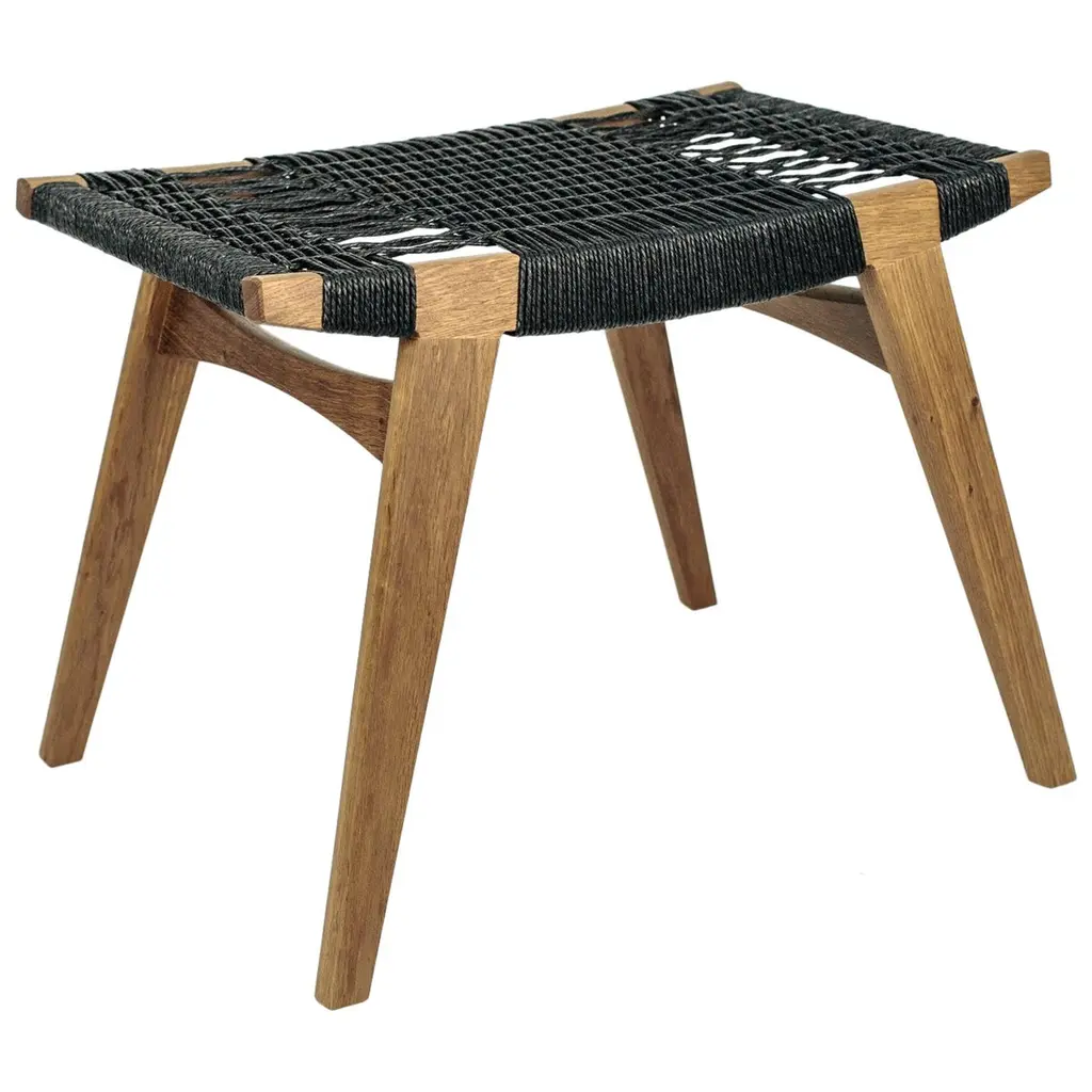 Contemporary Pi Stool, Fumed Oak Frame, Black Danish Cord Seat