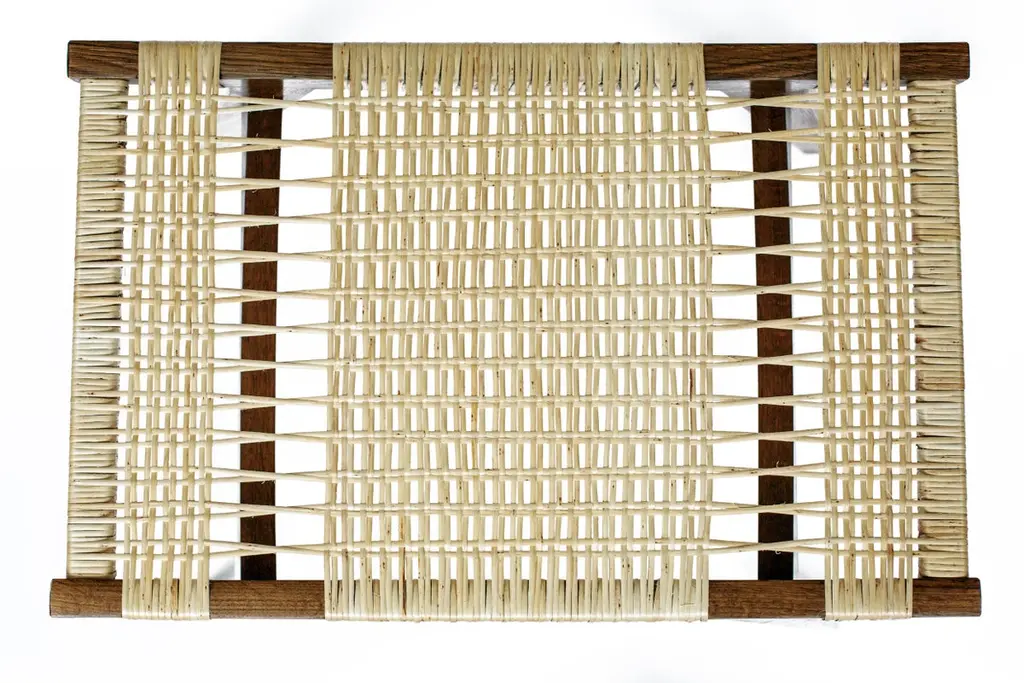 Contemporary Pi Stool Fumed Oak Frame, Oil Finished, Split Willow Skein Seat