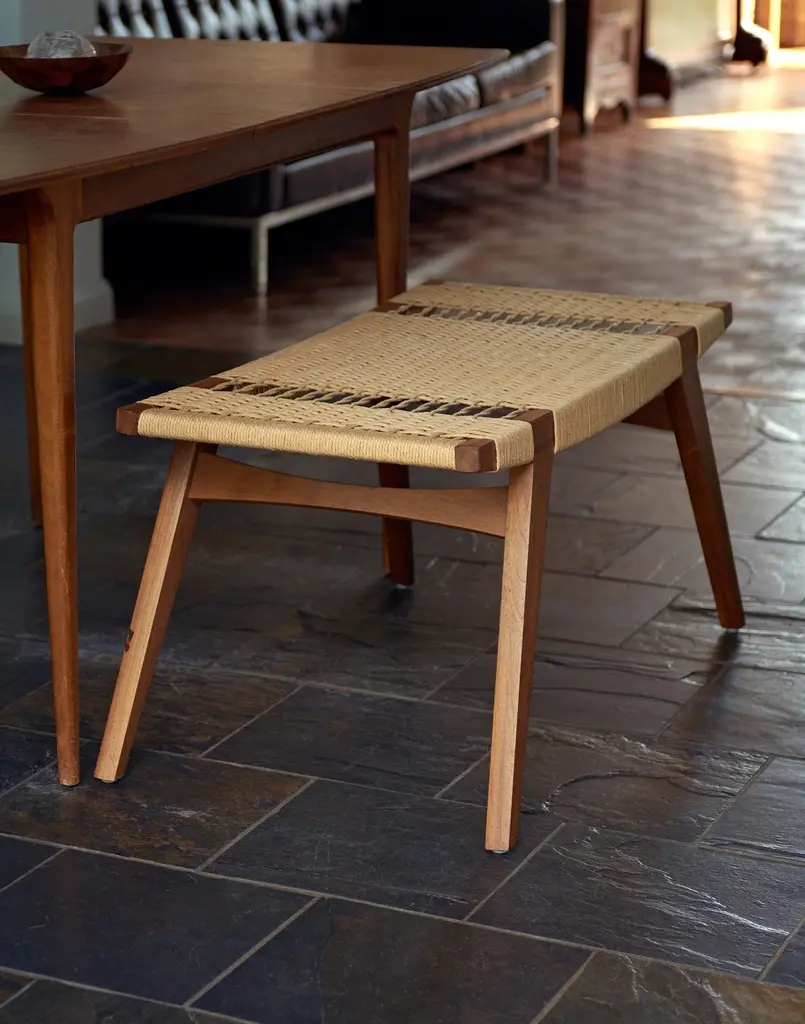 A variation of our original pi stool, the pi2 stool has all the same trademark features but with elongated proportions. The longer seat is ideal for the end of a bed, as a side/coffee table in your living room or sat in a sunny alcove for a special reading spot.Our iconic pi stool range draws it's inspiration from the 20th century modernist idiom, Scandinavian Modern design, Danish furniture, and Japanese aesthetics. Also influenced by the modern craft movement. Both modern and traditional joinery techniques are employed to manufacture in small batches from sustainably sourced oak, ensuring the best attention to detail and quality. The Danish cord seats are woven by experienced craftspeople to the highest standard.The ebonised oak is created by drawing out the naturally-occuring tannins in the oak and using a simple chemical process to turn the wood black. The finish is sealed with a natural wax-oil which gives a beautiful lustre that will last for many years without the use of a petrochemical, sprayed product.Dimensions approximately 900 L x 445 W x 443 H mmLead time 6-8 weeks.