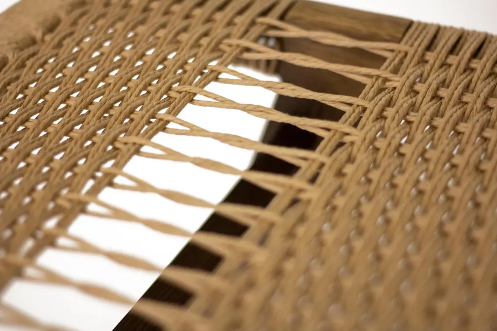 Contemporary Pi3 Stool, Fumed Oak Frame, Danish Cord Seat