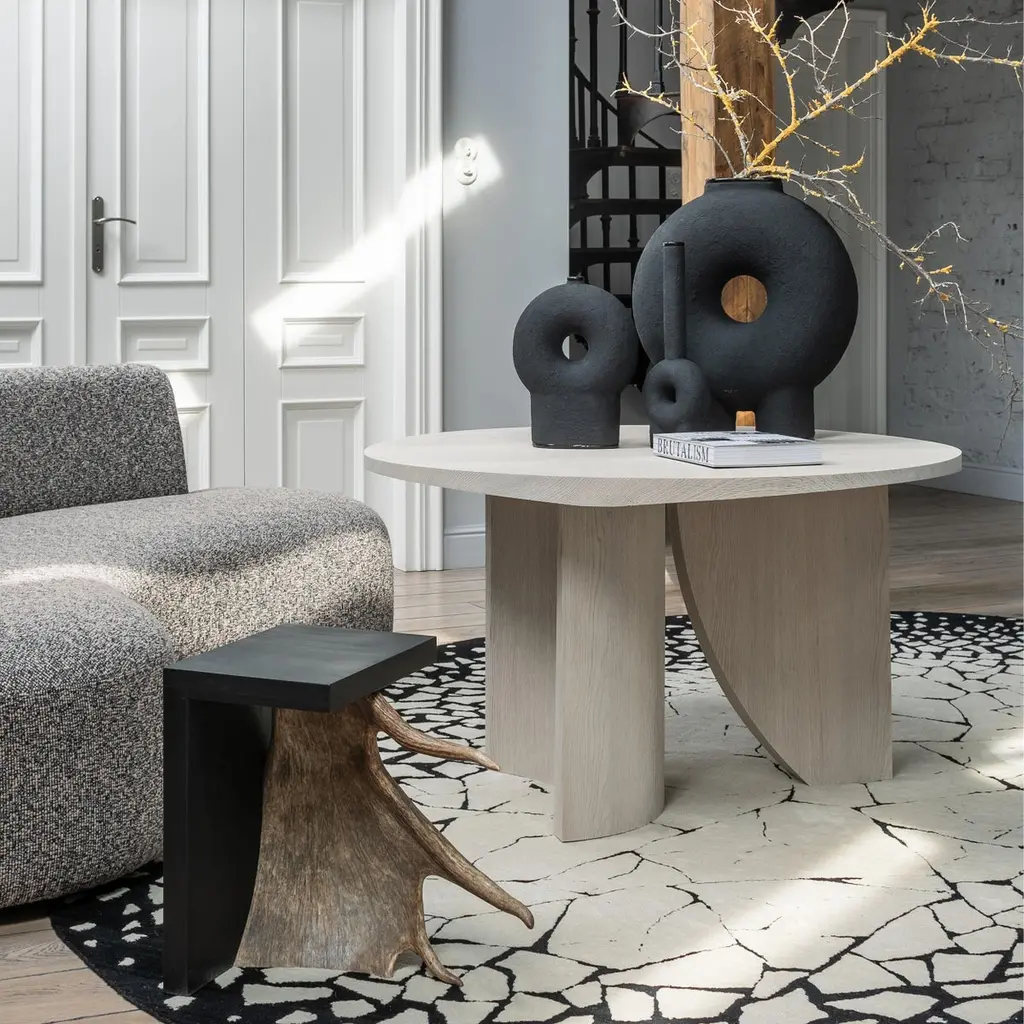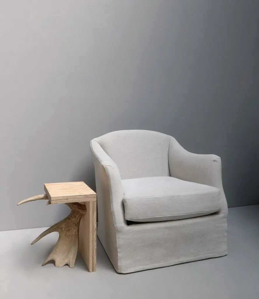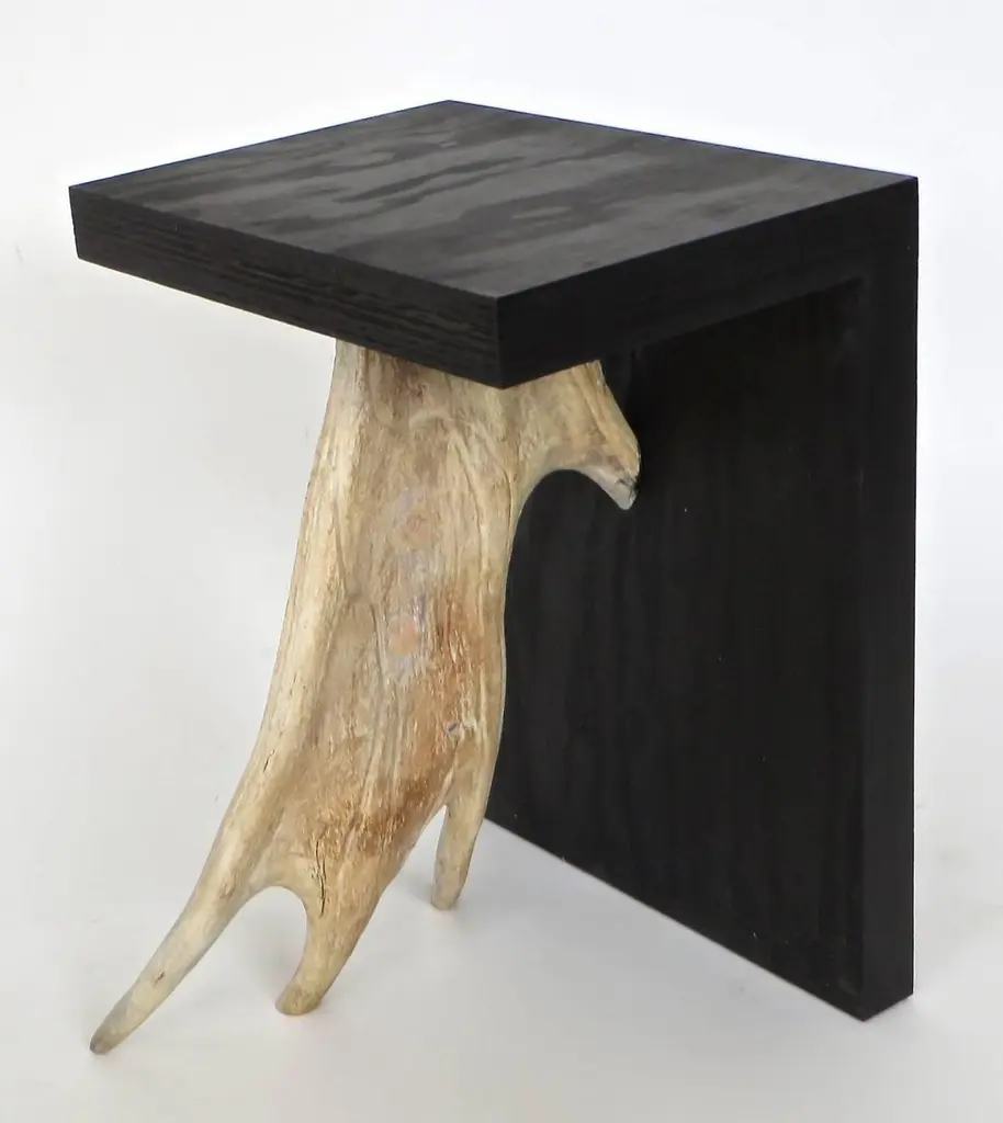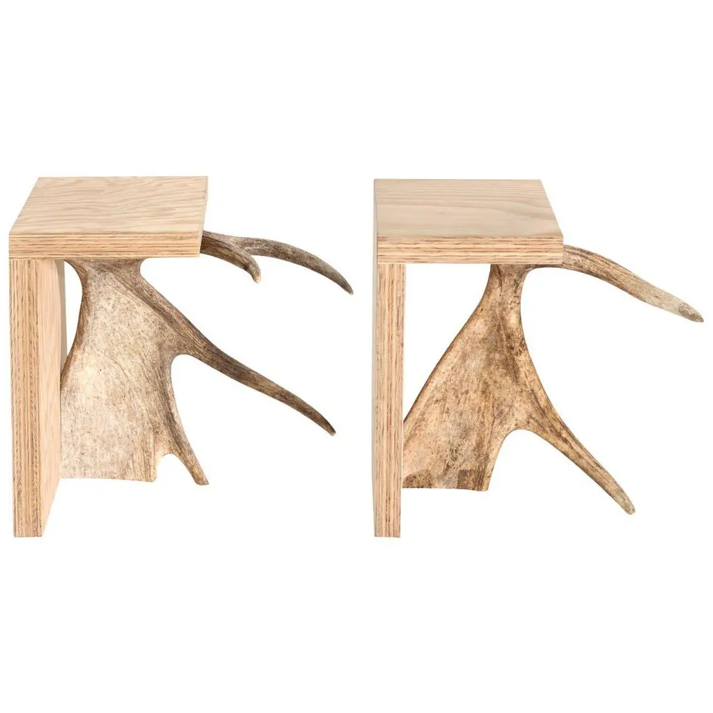 Stag T Stool / Side Table by Rick OwensDimensions: L 55 x W 30 x H 44 cmMaterials: Plywood, antler mooseWeight: 7.3 kgEach piece is unique and may differ as the Antler Moose is unique.Available in black or natural plywood finish.Rick Owens is a California-born fashion and furniture has developed a unique style that he describes as “luxe minimalism.”Though his designs are simple and spare, Owens thrives on theatricality - producing wildly original runway shows featuring gender-fluid models of all ages and shapes. Inspired by his longtime partner and muse, Michele Lamy, clothes and furniture alike feature dark grays, blacks and browns. Like his frontier forebears, Owens finds his strongest influences in nature - his furniture and housewares have simple, organic shapes, and a few items even feature his distinctly 21st century take on antlers.Made by hand, in France.