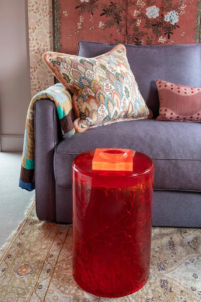 Contemporary Red Resin Acrylic Side Table Or Stool By Natalie Tredgett