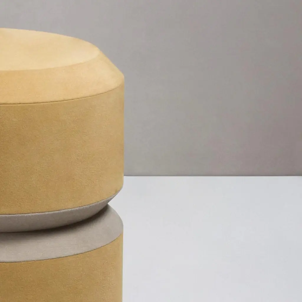 Contemporary round leather stool - Yoyo by Stephane Parmentier for Giobagnara.The object presented in the image has following finish: A76 Mustard Suede Leather and A37 Light Grey Suede Leather.Great for an office, kids room or any place in the house in need of extra seating and a touch of color, this stunning stool is crafted of soft leather in a refined mustard color. The playful shape inspired by the iconic toy that gives the name to the collection features a central, indentation in white leather. The simple design is executed with the unparalleled craftsmanship that distinguishes all Giobagnara pieces. Available exclusively in nappa, suede and printed calfskin.Design: Stéphane ParmentierMaterial: Golf, Suede or Nappa Leather, fully leather covered.Dimensions (in): W 13.98 x D 13.98 x H 18.11Dimensions (cm): W 35.5 x D 35.5 x H 46Made by hand, in Italy.This item is made to order. Please choose the finish that you want for your piece.