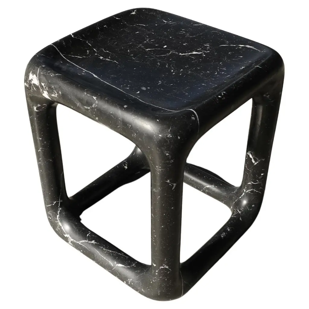 Contemporary Side Table / Stool In Gray Orobico Marble, Bold Side Table