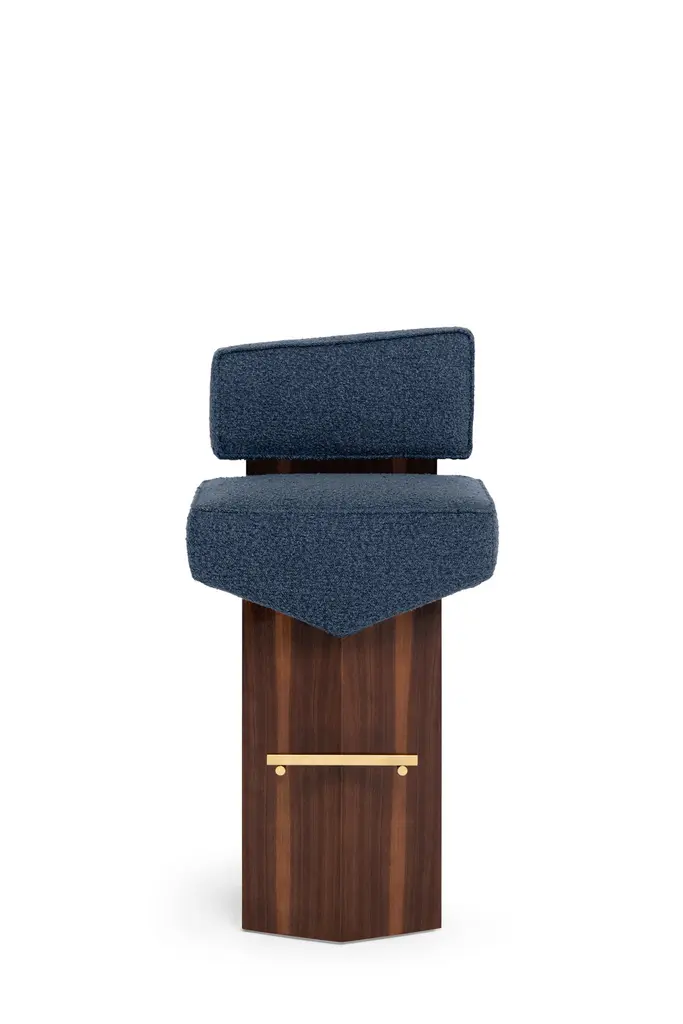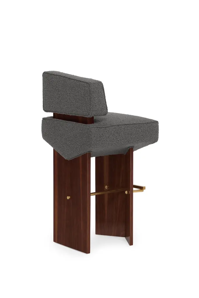 DIVERGENT Stool by Marta Delgado StudioFabric: COMColor: Graphite (more colors available)Wood: American Walnut VeenerDimensions:Width: 21.2” 54 cm Depth: 20.5” 52 cm Height: 42.9” 109 cm Seat Height: 31.9” 81 cm Seat Depth: 15.3” 39 cm-----Marta Delgado is a Portuguese artist, she founded her design studio after several years of working in furniture and interior design. The pieces signed Marta Delgado are luxurious and original. She seeks to create timeless furniture and for this she works with noble materials that will last over time.