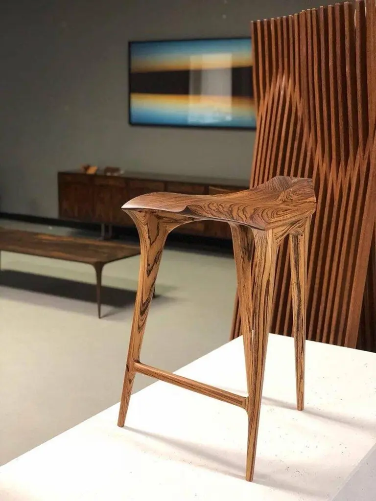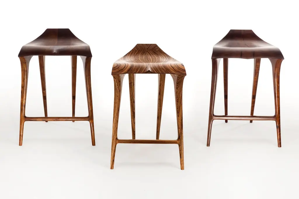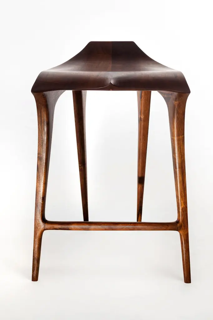 The Barba Negra stool was created as an interpretation of the sensations aroused by the contact with the marine universe that generated a curvilinear, fluid and dynamic design of the piece. The solid wood is cut into several parts to be better used. Those parts are then fitted, glued and sculpted by hand to the final shape.This stool is ergonomic and functional but can also be used individually as an outstanding item in the environment. It is signed, dated and numbered.
