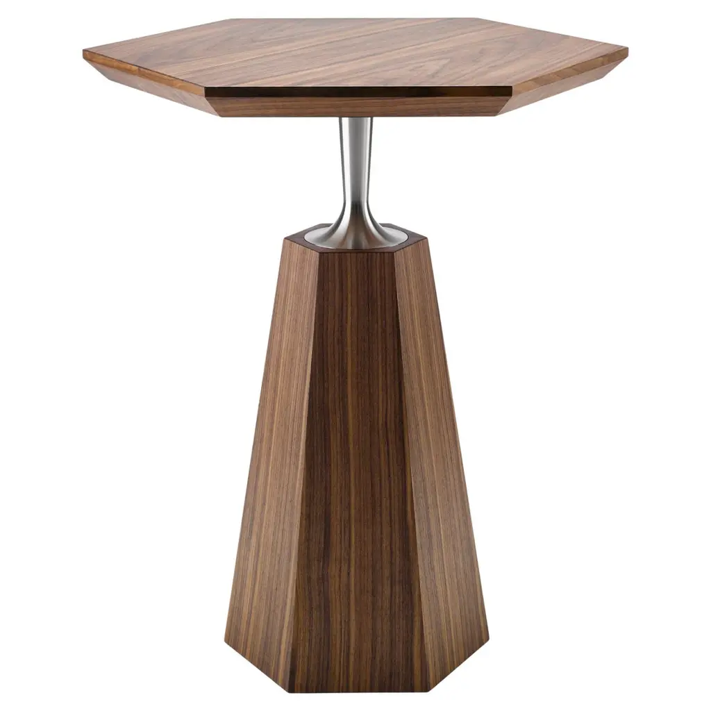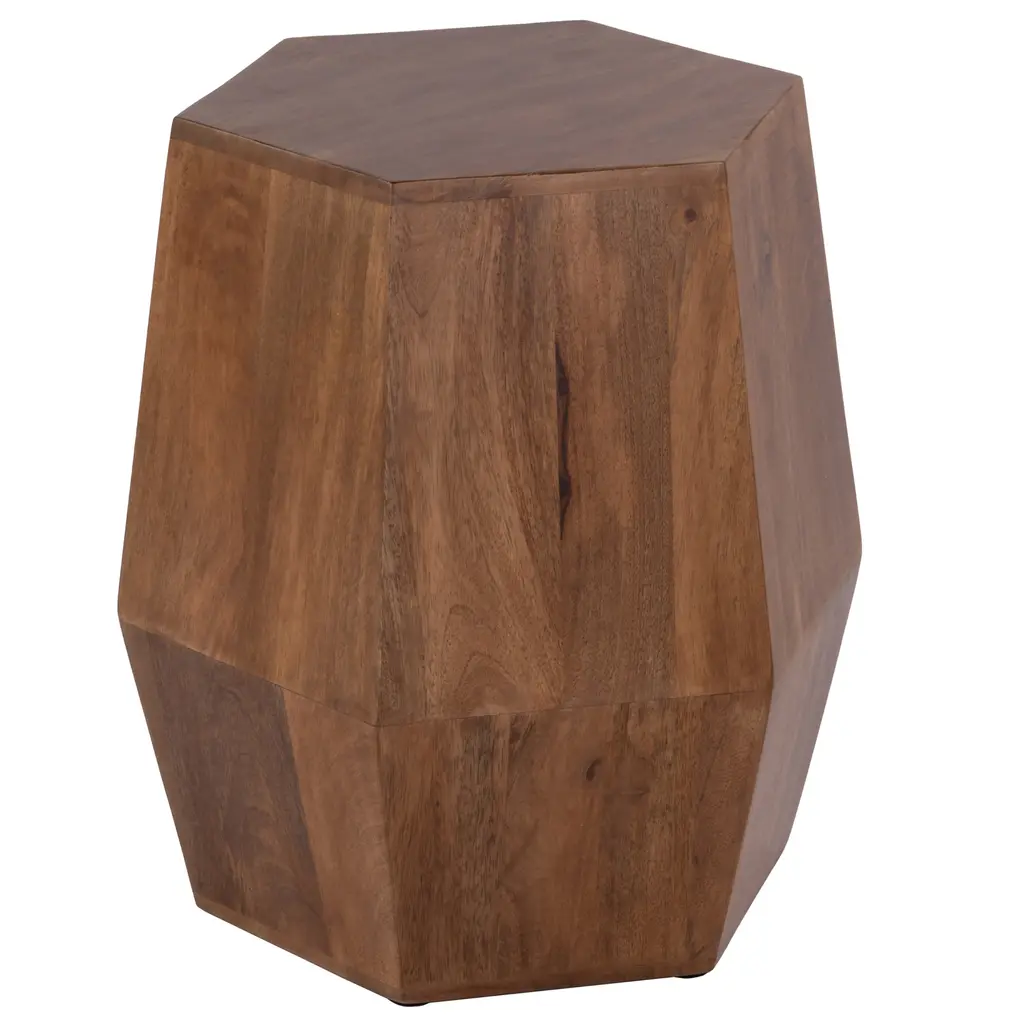 Contemporary Stool Side Table In Wood And Stone