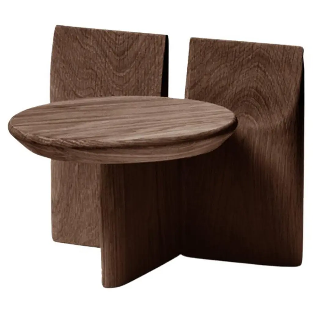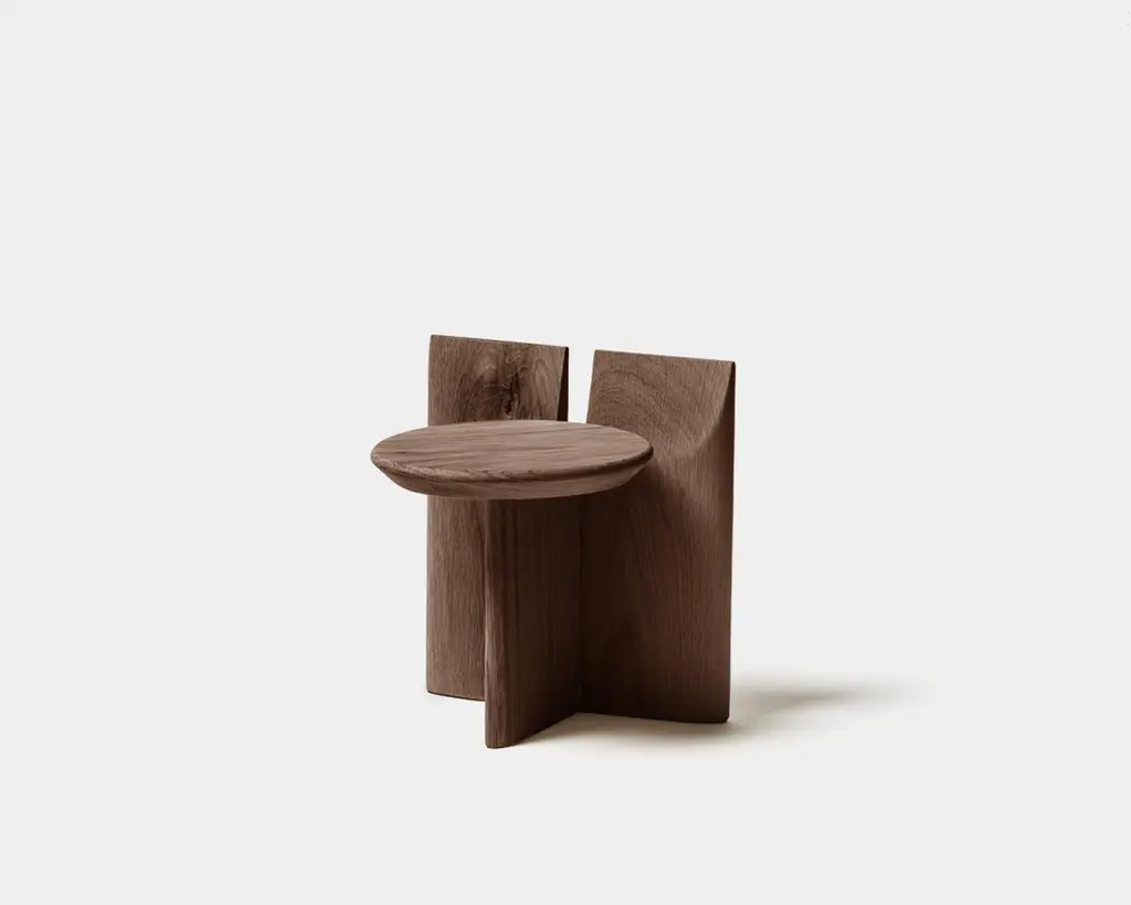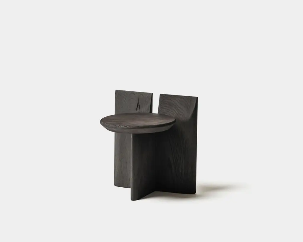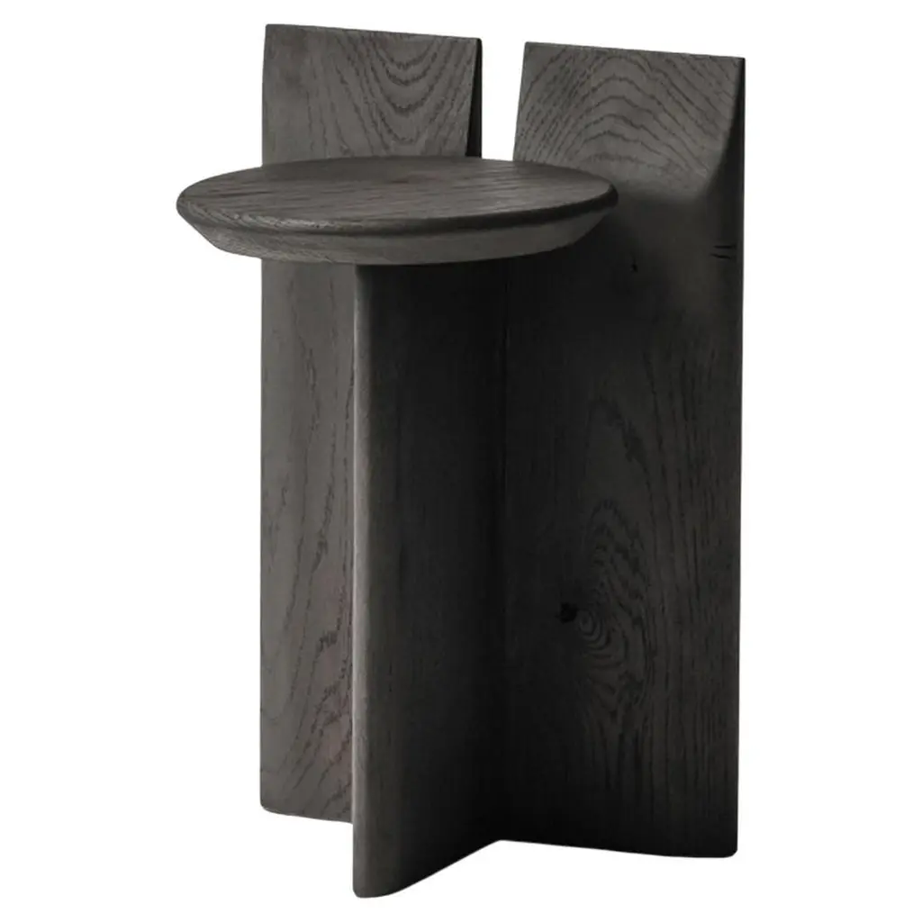 'Tabi' Stool designed by Studio Obstacles in collaboration with Spanish artist Yoyo Balagué.Dimensions:Seat height: 30 cm x H. 37 cm x W. 33 cm x Diameter 30 cmSeat height: 11.8 in × H. 14.6 in × W. 13 in × Diameter: 11.8 inMaterial:Solid OakFinishes available:Coffee, Black, Umber, Oil, and NaturalHeights available:45 cm, 30 cm or 20 cmModel shown on main picture:Black, Height 30cm ------Tabi is a series of sculptural stands, inspired by a collaboration with the artist Bruno Ollé. Tabi is a versatile, geometric element that aims to bring users into a more creative relationship with their living space.Obstacles emerged out of a desire to make objects that are deliberate. They believe in conscious simplification, following a process of geometric reduction that allows the essential quality of each object to emerge. This brand collaborates with a careful selection of Spanish fine woodworkers, maintaining close involvement with them throughout the design process. This partnership allows them to preserve their tradition, reinterpreting their knowledge to respond to a contemporary context.