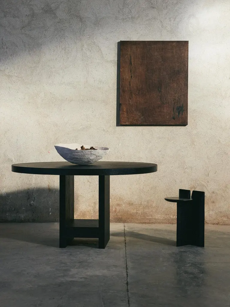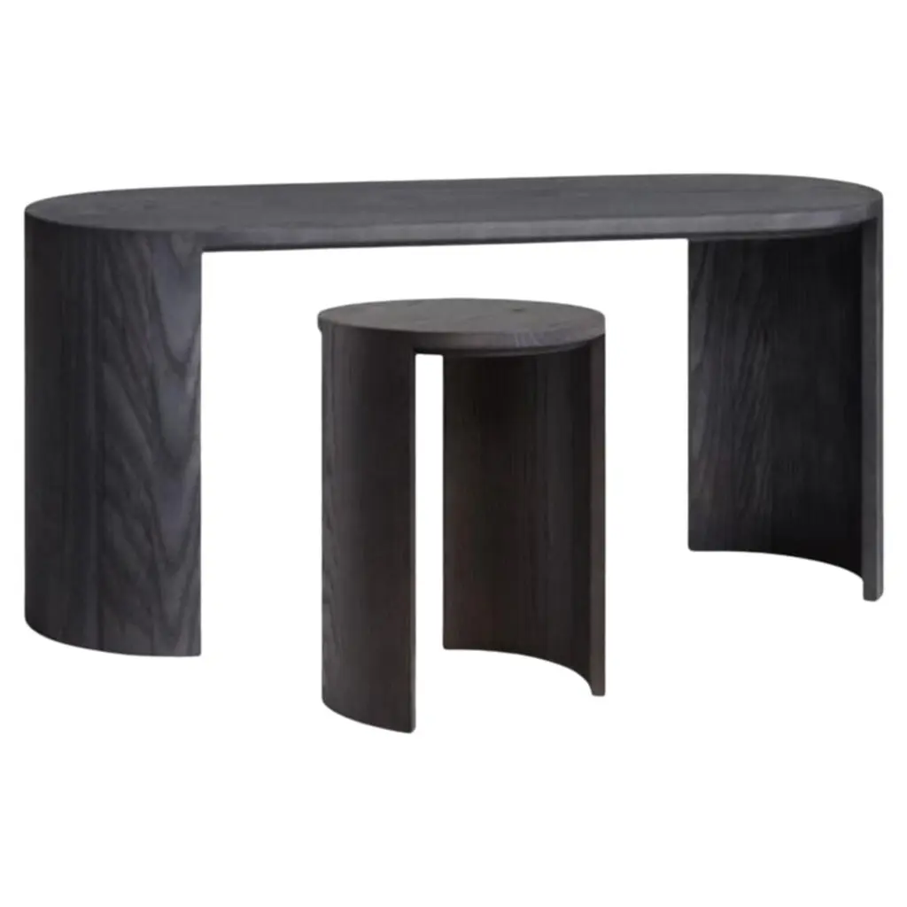 'Tabi' Stool designed by Studio Obstacles in collaboration with Spanish artist Yoyo Balagué.Dimensions:Seat height: 45 cm x H. 52 cm x W. 33 cm x Diameter 30 cmSeat height: 17.7 in x H. 20.5 in x Wi. 13 in x Diameter 11.8 inMaterial:Solid OakFinishes available:Coffee, Black, Umber, Oil, and NaturalModel shown on main picture:Black, Height 45 cm------Tabi is a series of sculptural stands, inspired by a collaboration with the artist Bruno Ollé. Tabi is a versatile, geometric element that aims to bring users into a more creative relationship with their living space.Obstacles emerged out of a desire to make objects that are deliberate. They believe in conscious simplification, following a process of geometric reduction that allows the essential quality of each object to emerge. This brand collaborates with a careful selection of Spanish fine woodworkers, maintaining close involvement with them throughout the design process. This partnership allows them to preserve their tradition, reinterpreting their knowledge to respond to a contemporary context.
