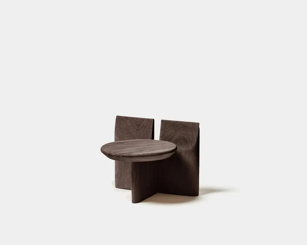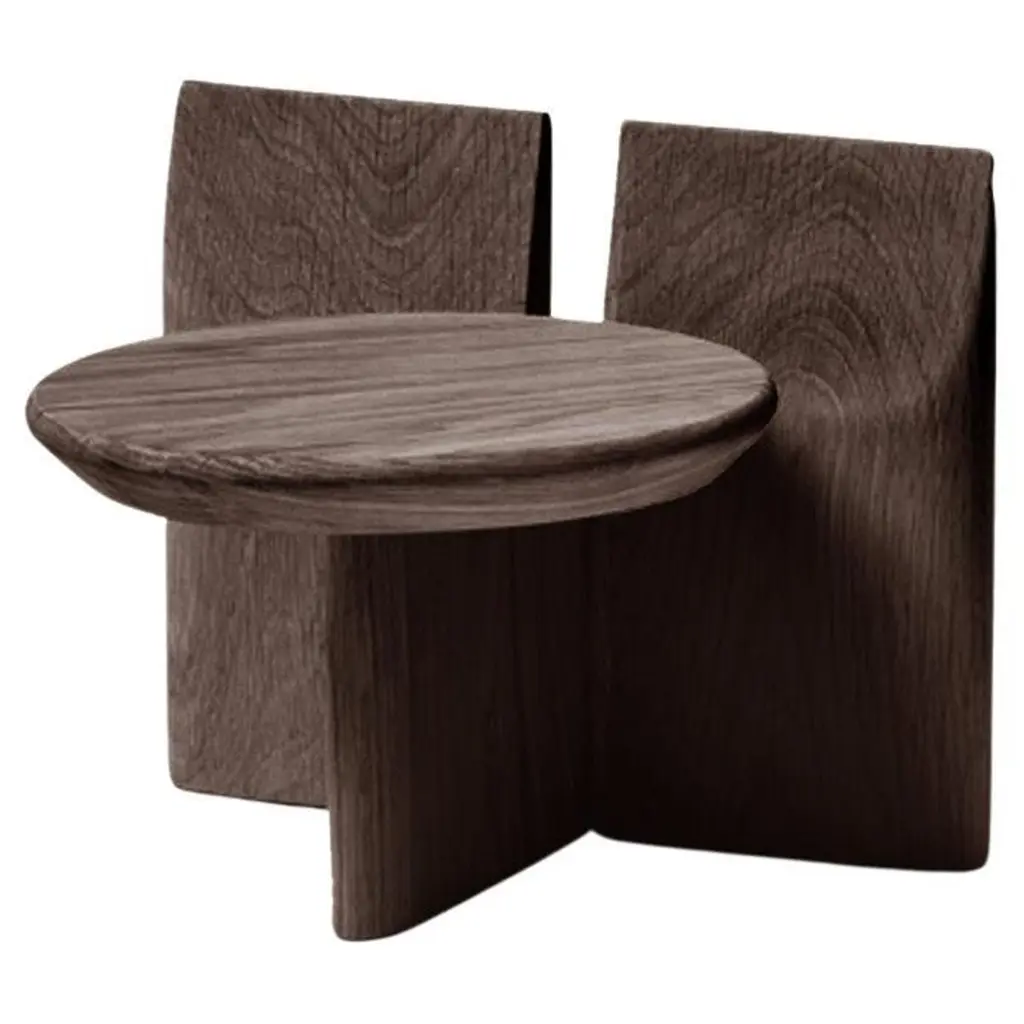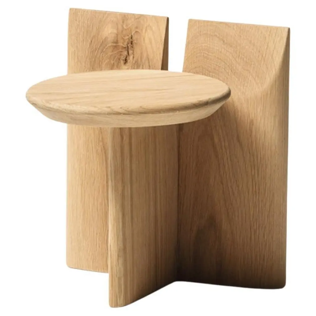 'Tabi' Stool designed by Studio Obstacles in collaboration with Spanish artist Yoyo Balagué.Dimensions:Seat height: 20 cm x H. 27 cm x W. 33 cm x Diameter 30 cmSeat height: 7.9 in × H. 10.6 in × W. 13 in × Diameter: 11.8 inMaterial:Solid OakFinishes available:Coffee, Black, Umber, Oil, and NaturalHeights available:45 cm, 30 cm or 20 cmModel shown on main picture:Umber, Height 20 cm ------Tabi is a series of sculptural stands, inspired by a collaboration with the artist Bruno Ollé. Tabi is a versatile, geometric element that aims to bring users into a more creative relationship with their living space.Obstacles emerged out of a desire to make objects that are deliberate. They believe in conscious simplification, following a process of geometric reduction that allows the essential quality of each object to emerge. This brand collaborates with a careful selection of Spanish fine woodworkers, maintaining close involvement with them throughout the design process. This partnership allows them to preserve their tradition, reinterpreting their knowledge to respond to a contemporary context.