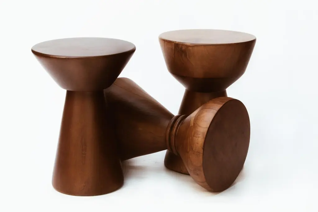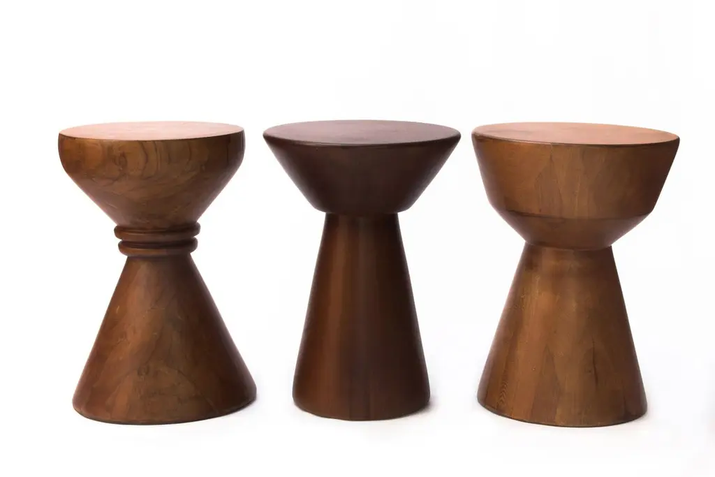 Contemporary Brown Stools by Camilo Andres Rodriguez Marquez (aka CarmWorks)Solid oak or cedar / Burnt wood or naturalSuitable for outdoor useEach piece is made to order and hand crafted by the artist.--Camilo Andres Rodriguez Marquez is a Colombian born designer with a degree in Industrial Design from Colombia (FUAC) and Mexico (UNAM). He is fascinated by photography and cinematography, and intends to unify these two artistic expressions into his design in the form of narrative, projecting and communicating the interaction between the world and his objects. In his visits to several places in Mexico, such as San Juan Chamula in the sierra of Chiapas, Tzintzuntzan in Michoacán or Real de Catorce in San Luis Potosí, he was exposed to experiences that provided him with the awareness of how traditions, storytelling and rituals play an important role on how humans interpret their reality and our role in the universe.My hope is that we become attuned with what surrounds us in a sensoral and emotional state, by perceiving these pieces within a story of creation. This is why I want to demonstrate where it originated from and its relationship with the craftsman. This journey leaves a trace that can be seen in those imperfections and details that the artlessness of the handicraft possesses.We aim to provide a holistic view, where the mind can find a pleasurable and seamless contemplation in regards to the imperfection and the impermanence of nature.CarmWorks is a response to this exploration, on shaping people’s lives by suggesting a broader sensibility and providing a story to tell with these objects.