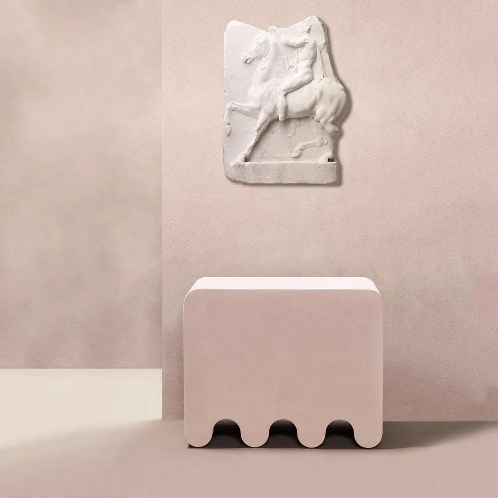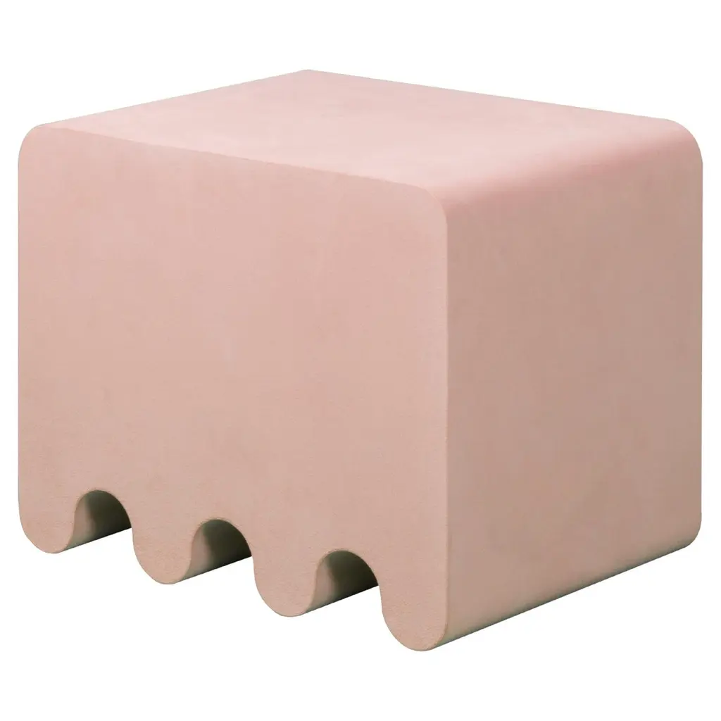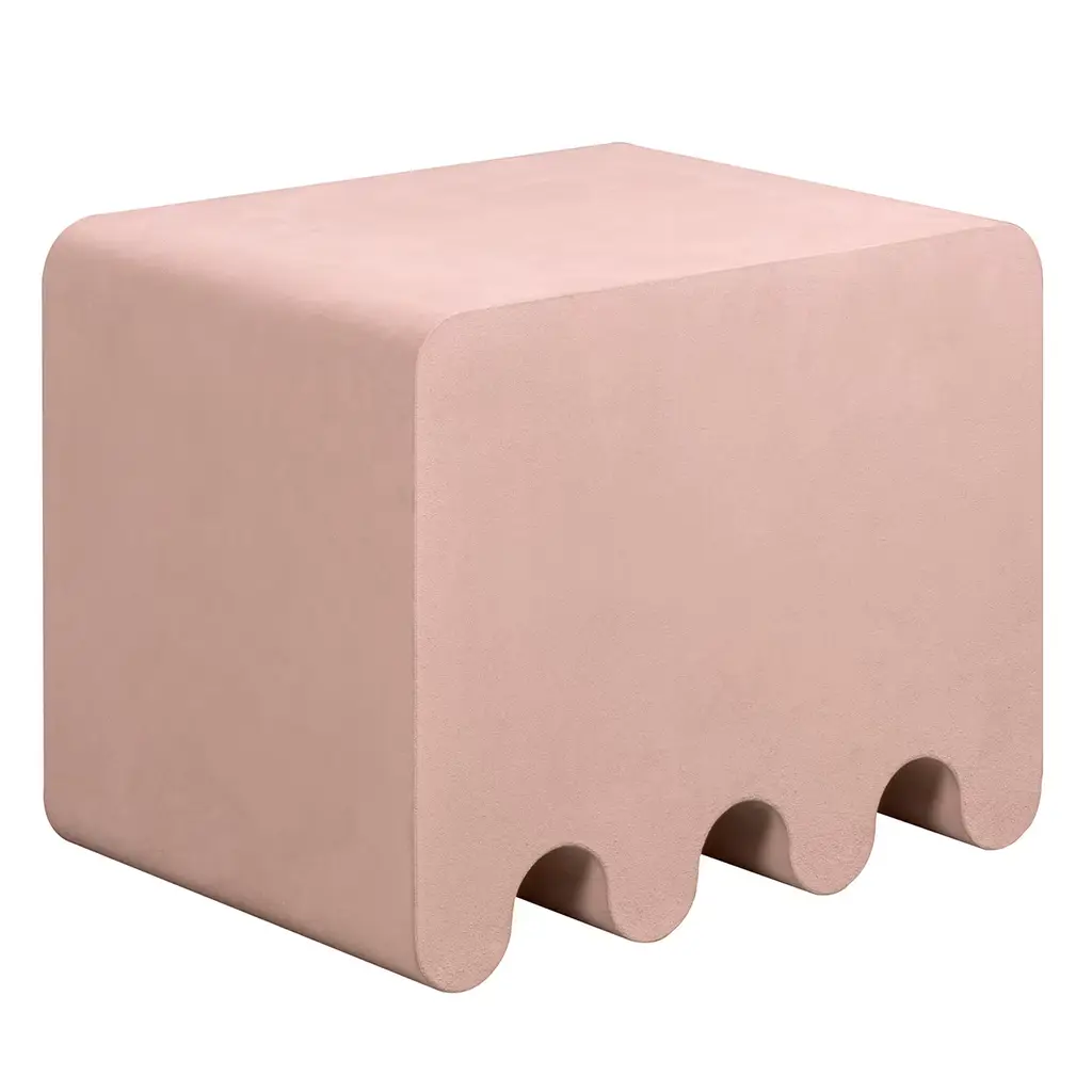 Contemporary suede leather stool - Ossicle by Francesco Balzano for Giobagnara.The object presented in the image has following finish: A91 Nude Suede Leather.An iconic piece from the Ossicle Collection of benches, seats, and tables, this pink stool is characterized by a sleek and harmonious silhouette outlined by a waved base. Inspired by the pieces used in the Ancient Greek and Roman game "Jeu des Osselets", it can be paired with others from this series for a balanced and cohesive look in a modern interior. Its pure geometry is completed with a fine leather upholstery. Design: Francesco BalzanoMaterial: Suede Leather, fully leather covered.Dimensions (in): W 22.05 x D 15.75 x H 17.91Dimensions (cm): W 56 x D 40 x H 45.5Made by hand, in Italy.This item is made to order. Please choose the finish that you want for your piece.