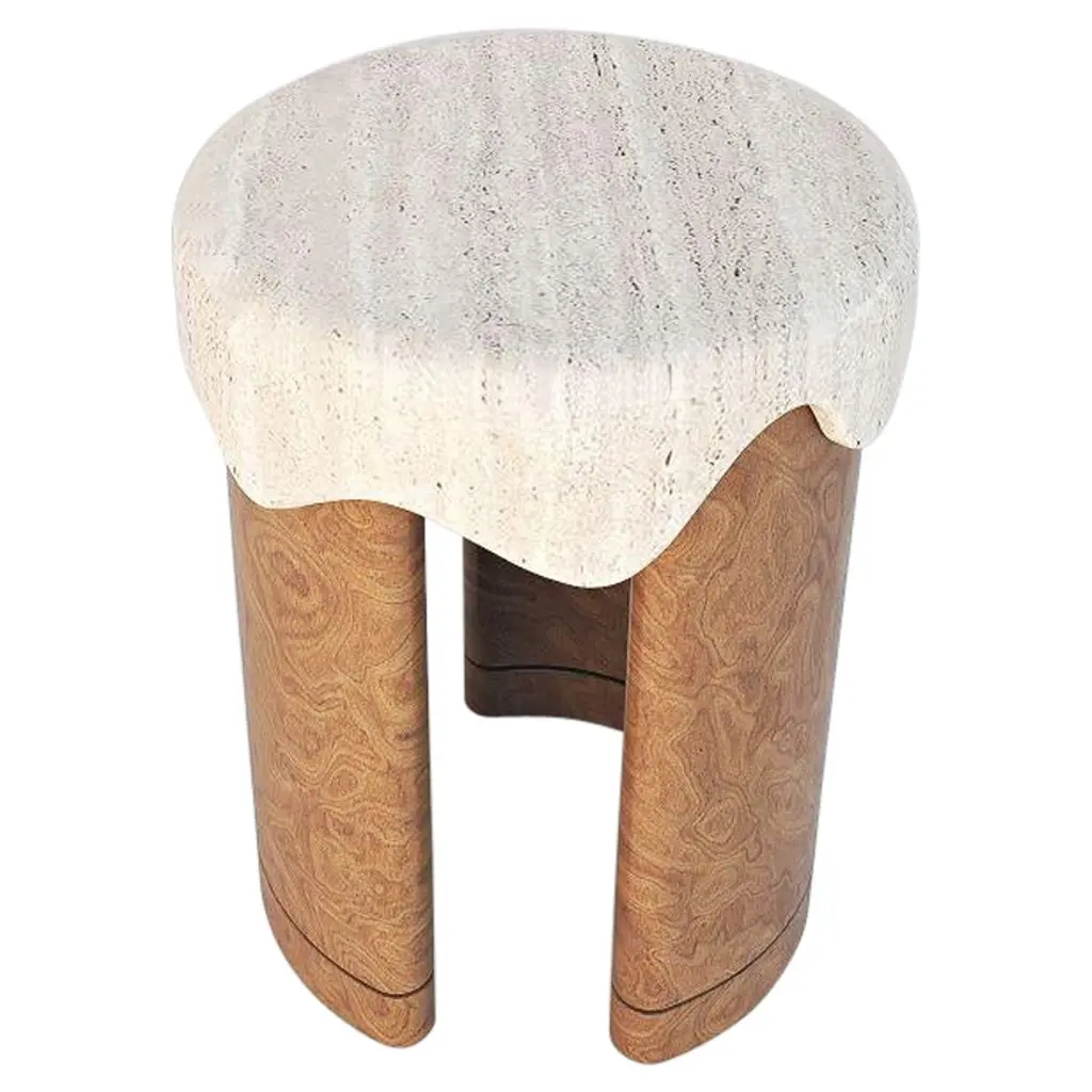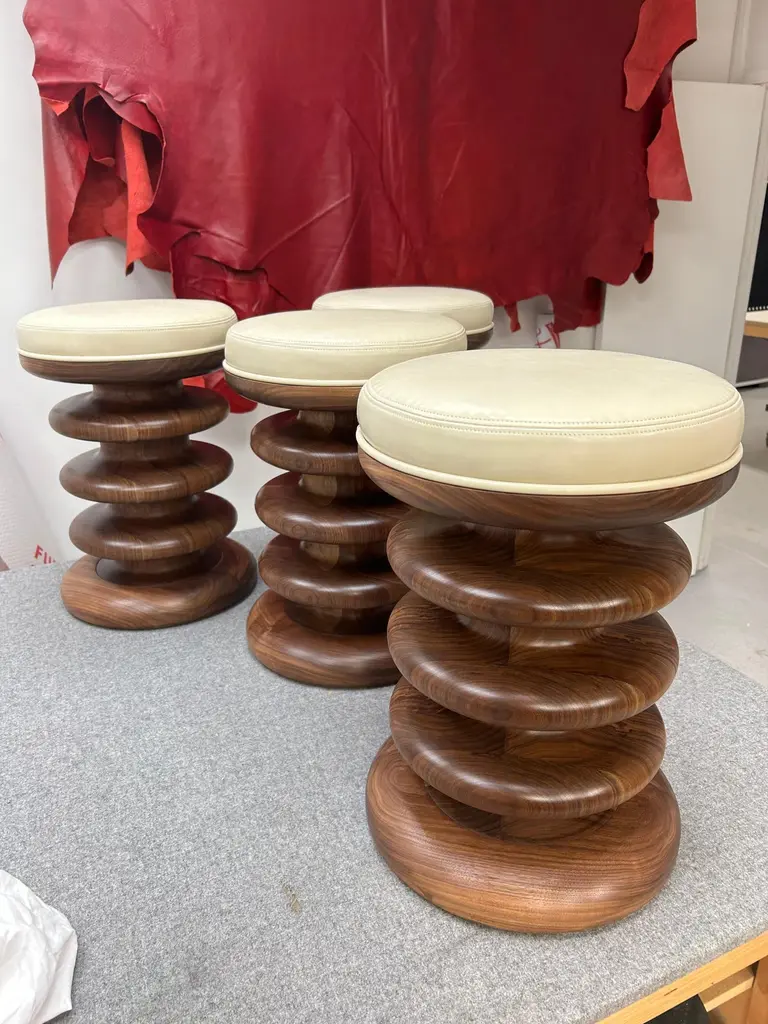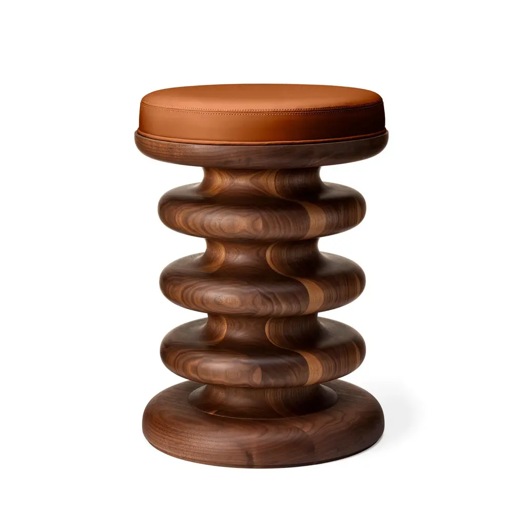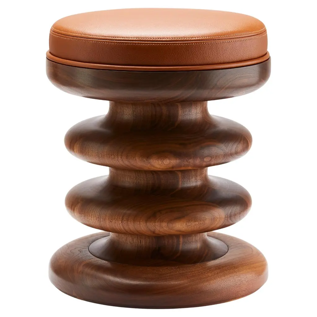 Contemporary Vertere Stool In Oiled Walnut With White Leather Seat Pad