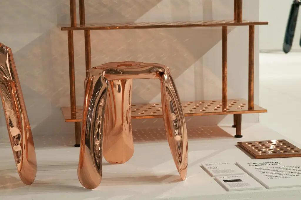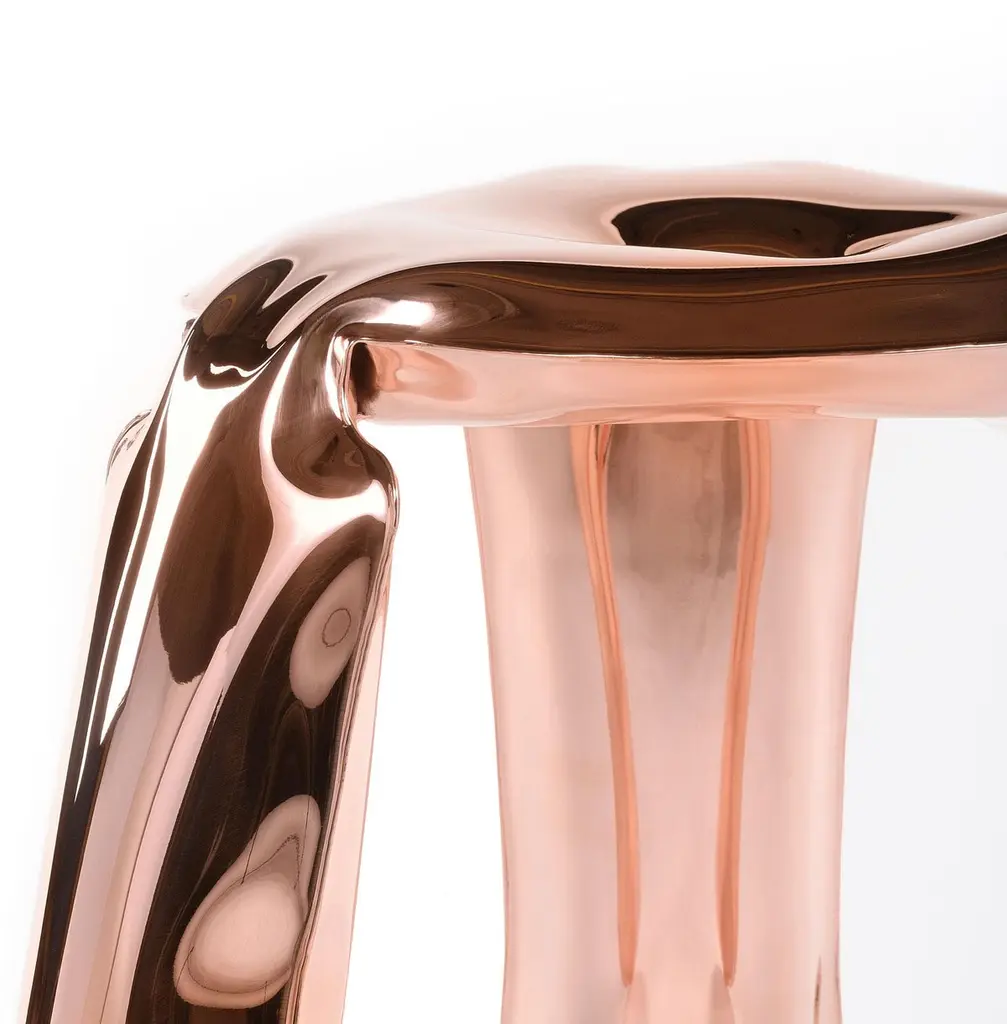 Copper standard Plopp stool by Zieta.Dimensions: D 35 x H 50 cm Material: Copper. Finish: Polished. Available in stainless steel, aluminum, carbon steel or copper. Also available in mini, standard, kitchen, and bar sizes. PLOPP stool is an icon and a bestseller of Zieta Studio. It is not only ordinary seating – its intriguing form defies the rules of geometry and contains the history of Oskar Zieta’s research on the properties and possibilities of metal. PLOPP, or “Polish folk air-pumped object”, is material proof that the creative and artistic aspect of design can be included in a highly advanced engineering form.The unique, toy-looking, and playful shape of PLOPP is an effect of an innovative forming method – FIDU technology. Forms made in FIDU are very light but also very durable. Since it was introduced to the market in 2010, it had already won such prestigious awards as the Red Dot Design Award 2008, the German Design Council Award 2008 and the Forum AID Award 2009.PLOPP Standard Aluminium features stools made of lightweight, eco-friendly material and is available in several finishes.PLOPP is also available in various sizes: PLOPP Mini, PLOPP Standard, PLOPP Kitchen, and PLOPP Bar.About Zieta: Zietas main goal is to deliver uniqueness and customization in design and construction while keeping the production, transport, and warehousing innovatively efficient.This is how they imagine the future world: Light, durable structures of customized applications produced on demand out of one-of-a-kind parts, yet efficiently.They use a computer-controlled production process. Customized pattern, customized form, customized function, one-of-a-kind product, and outstanding precision are what they deliver.You will find all of this philosophy reflected in the products. The research, they discover new possibilities, they play with forms and they deliver a beautiful, innovative, surprising outcome to people who love the design and who care about design development.They believe their work is a valuable contribution to the world of design not only by the unique beauty of the forms but most of all by opening ultra-innovative opportunities of forming and new paths for the world of the future.