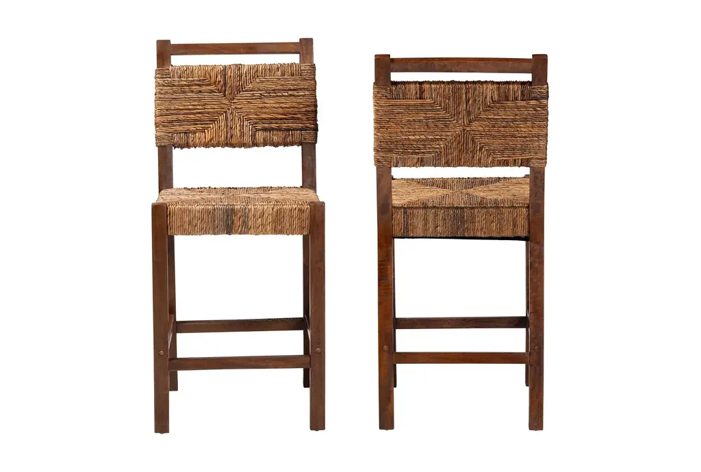 Cordoba Bohemian Natural Seagrass And Mahogany Wood 23.7" Counter Height Stool Set Of 2