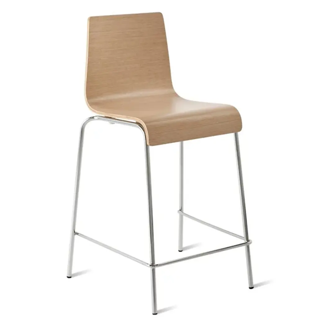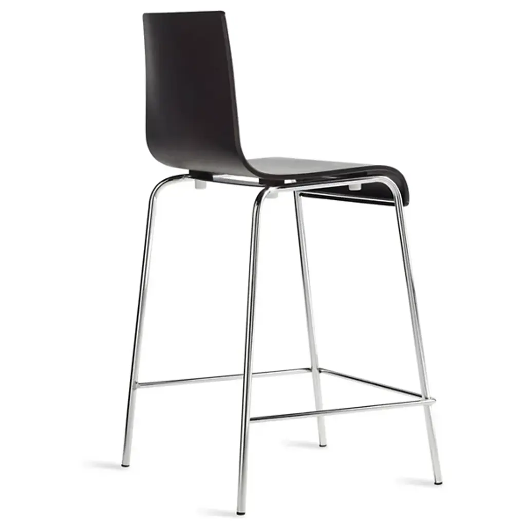 Make it a double. The Counterstool Counterstool by Blu Dot offers a stylish and unassuming seating solution for counters and bars. Simple and straight-forward, this stool has the perfect proportions for comfort, while remaining adaptable to just about any environment. A shapely bent wood seat and backrests atop super thin, but super sturdy, chrome-plated steel legs. A slender beam lends an understated footrest, effortlessly rounding out its modern, utilitarian style.