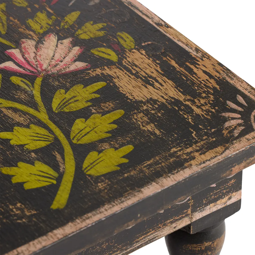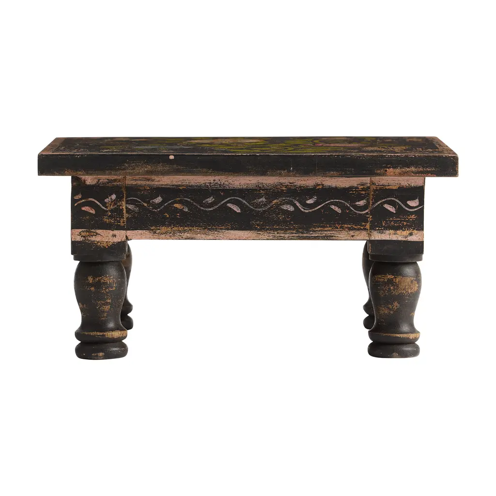 Traditionally used in Hindu worship for prayer or as a stand for a deity, this authentic chowki stool is refurbished by Indian artisans. In a choice of distressed colors and with a chic hand-painted floral motif, it adds global style to any room. Use it for meditation tools or to display a cherished ornament. Found in global communities and available in limited quantities, our one-of-a-kind CRAFT pieces bring heirloom-quality style to your home.