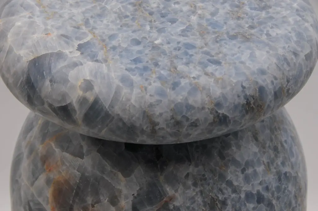 Cult Stool, Sculptural Side Table, Blue Calacite
